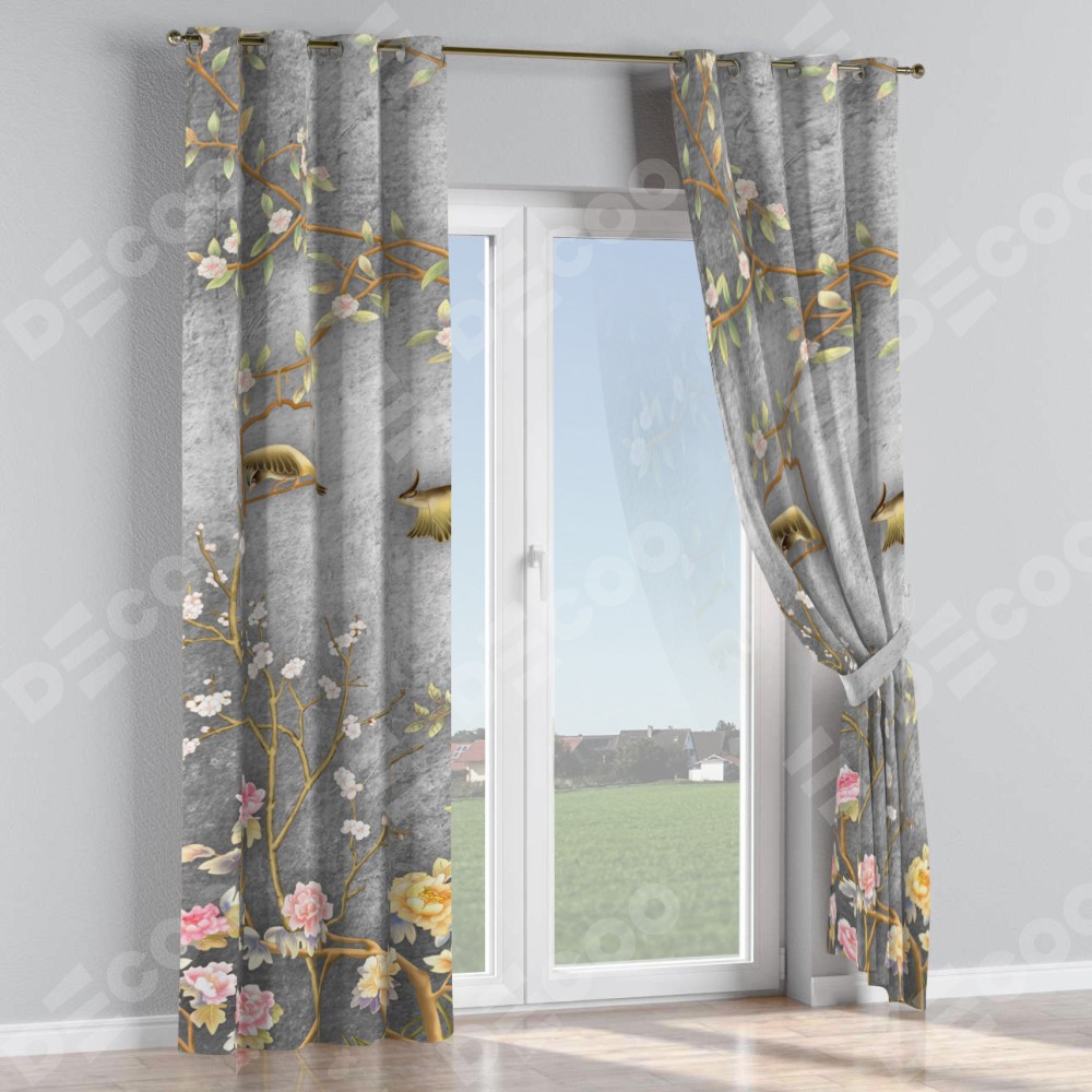Комплект прямых штор, от производителя «Cortin», пошиты из ткани Прелестный сад, артикул ткани. Данная модель пошита на люверсах, комплектуется на выбор круглым карнизом и подходит для монтажа на стену или потолок. Для создания элегантных складок рекомендуемый коэффициент 1:2 (на 100 см. ширины проёма 200 см. ширины ткани). Важно! Ширина штор указана без учёта коэффициента сборки!
