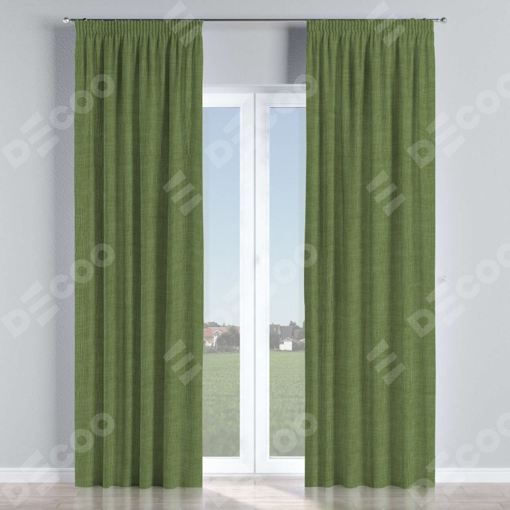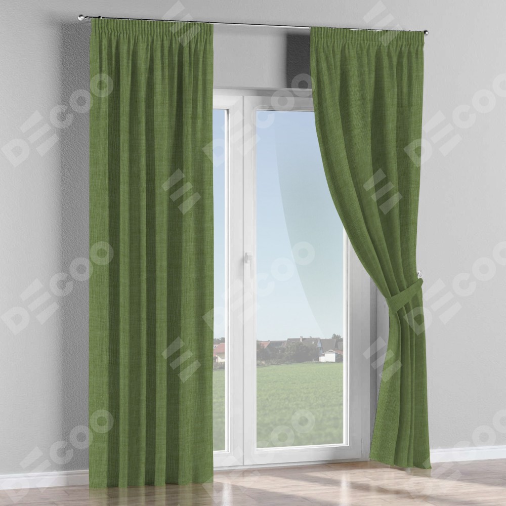 Комплект штор лён зелёный, на тесьме «Карандаш»