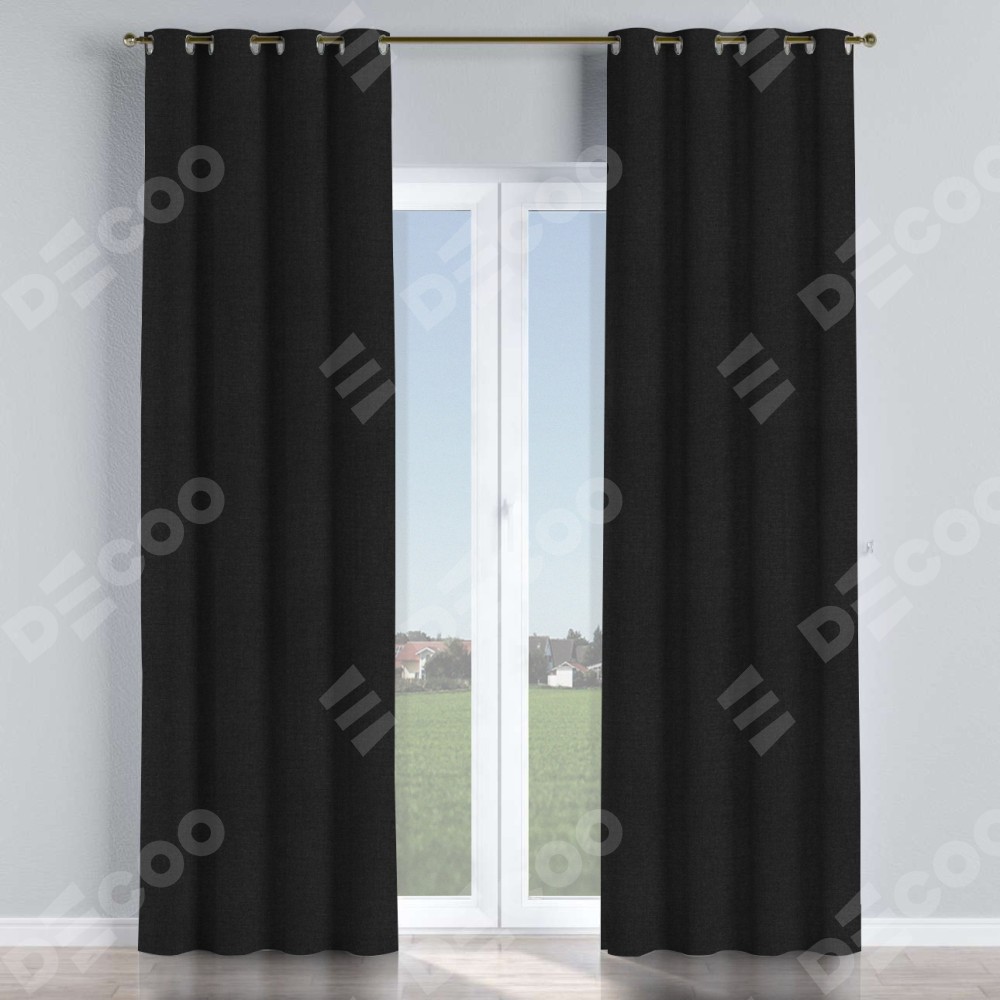 Комплект прямых штор, от производителя «Cortin», пошиты из ткани лён черный, артикул ткани 140815. Данная модель пошита на люверсах, комплектуется на выбор круглым карнизом и подходит для монтажа на стену или потолок. Для создания элегантных складок рекомендуемый коэффициент 1:2 (на 100 см. ширины проёма 200 см. ширины ткани). Важно! Ширина штор указана без учёта коэффициента сборки!