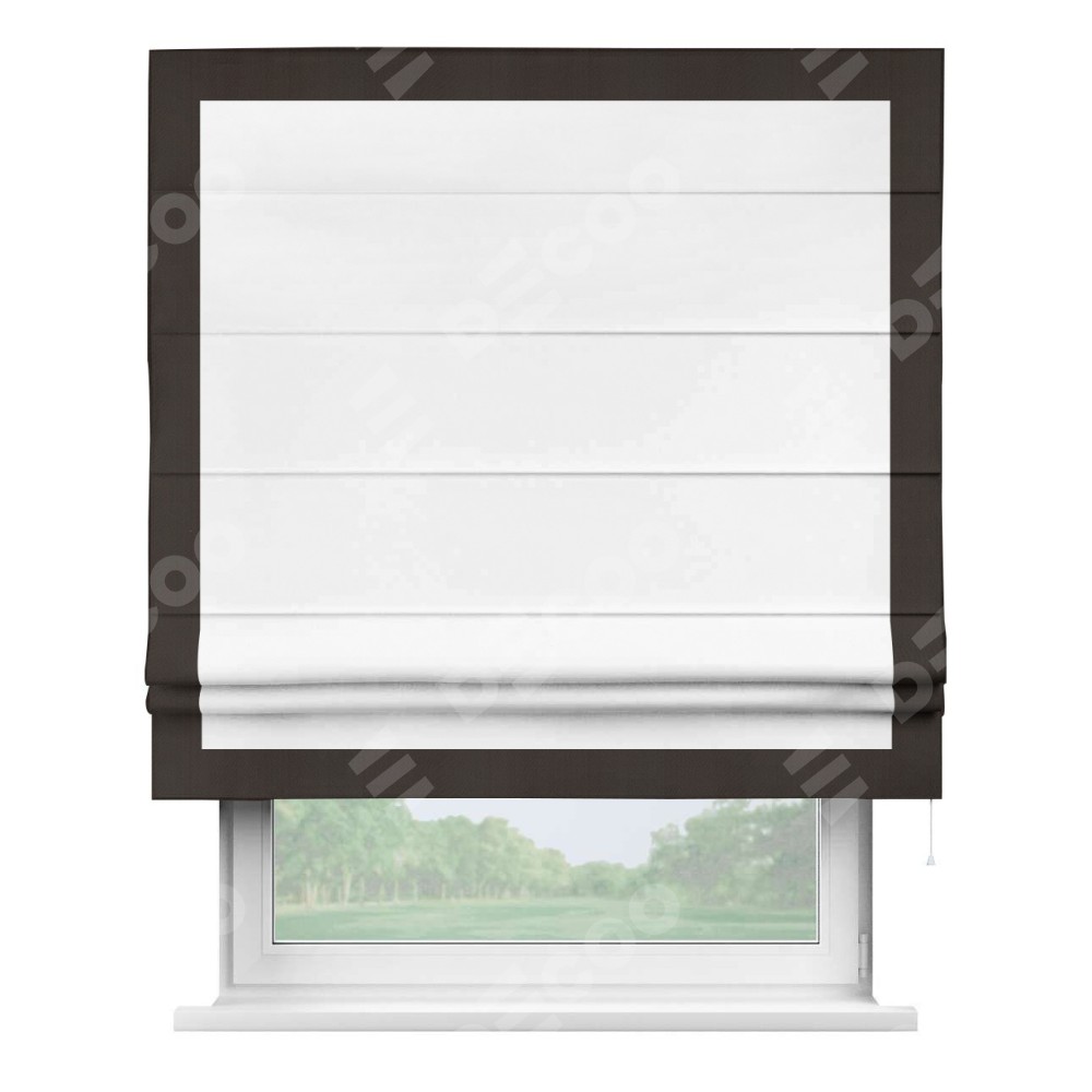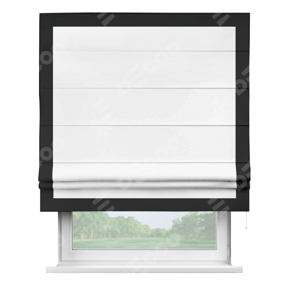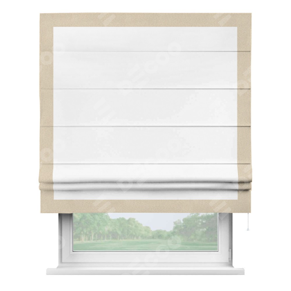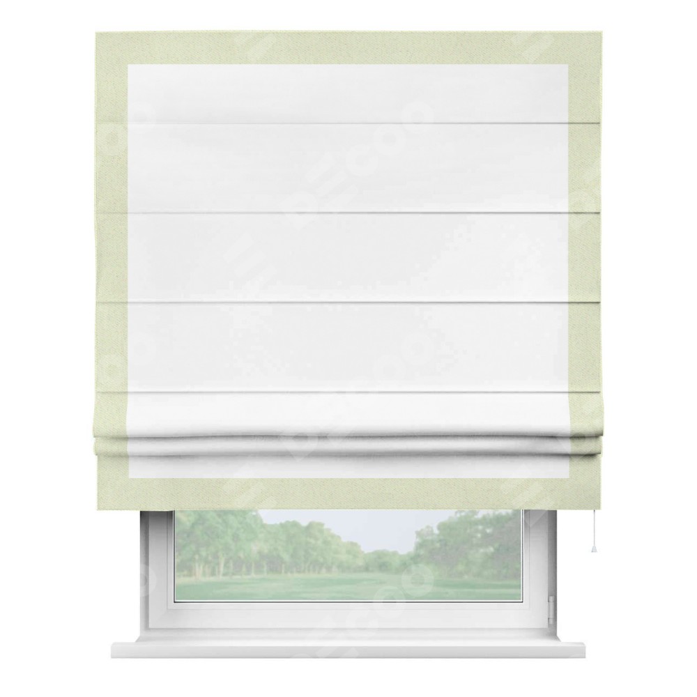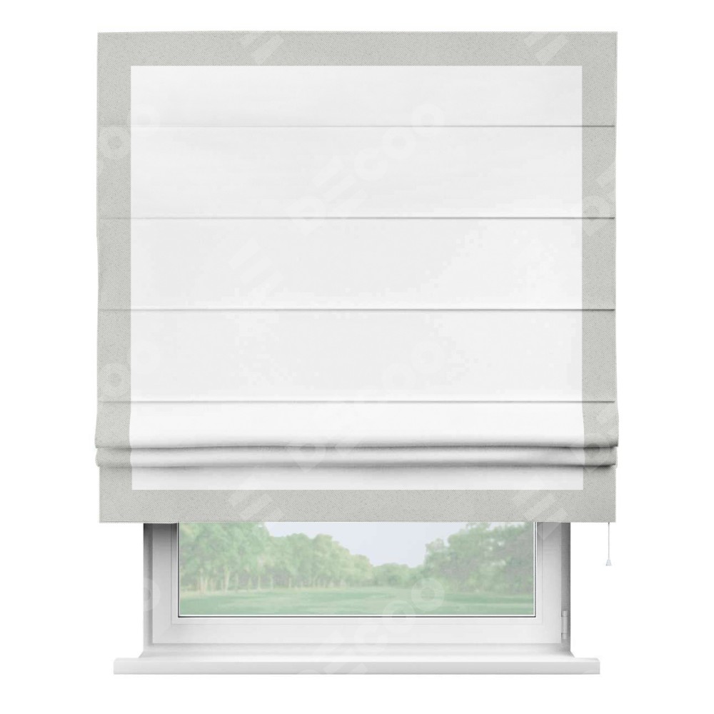 Римская штора «Кортин» для проёма, вайтаут однотонная белая с кантом Чесс