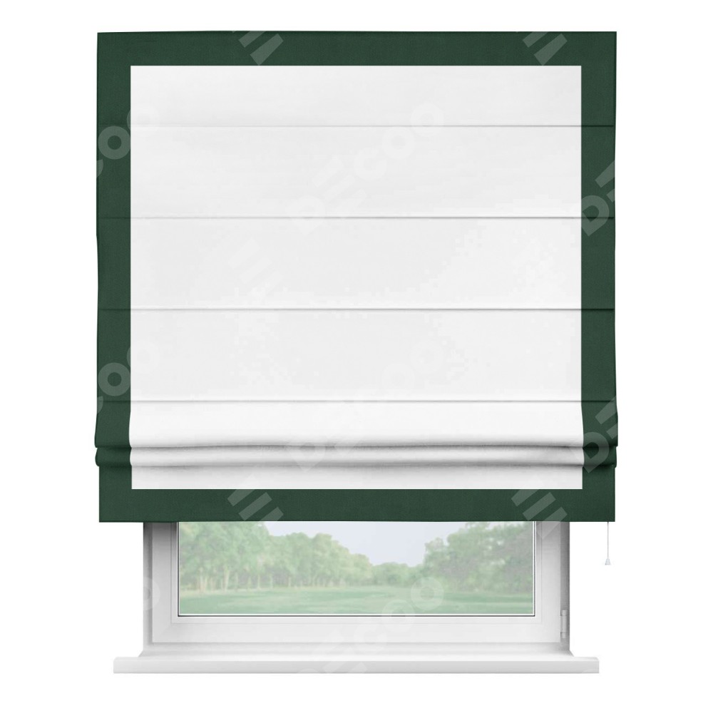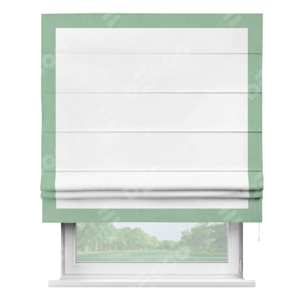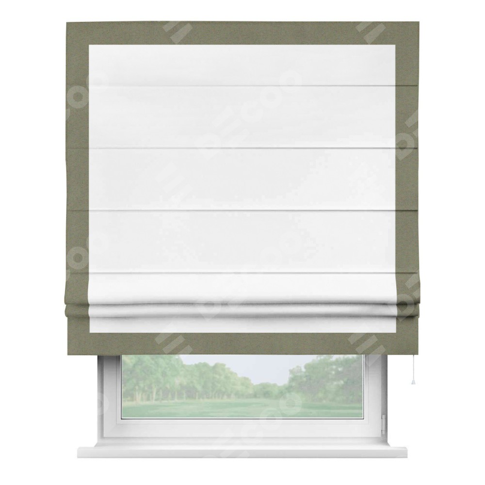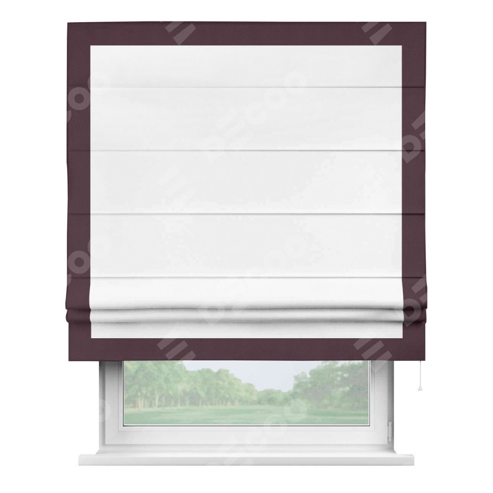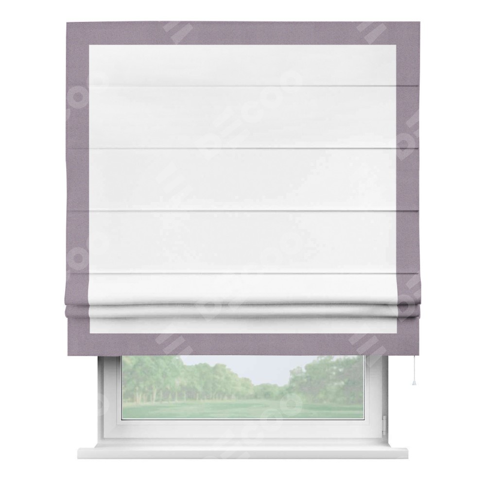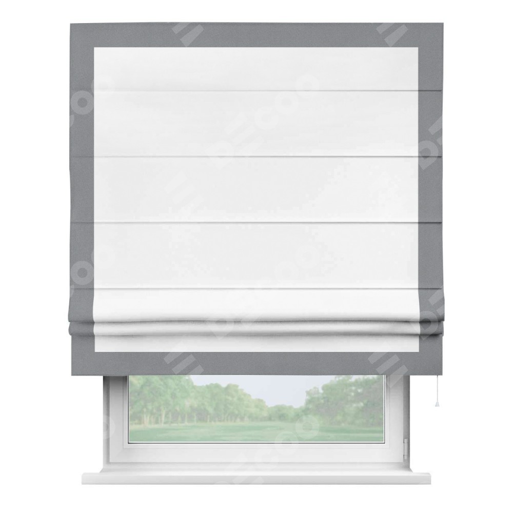 Римская штора «Кортин» для проёма, вайтаут однотонная белая с кантом Чесс