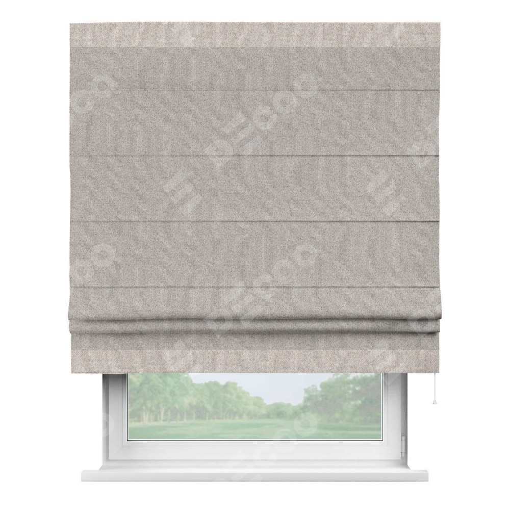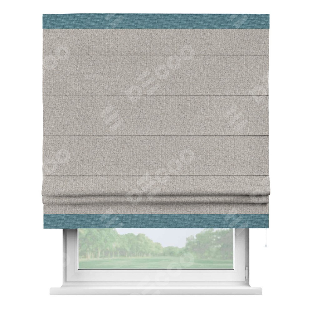 Римская штора «Кортин» для проема, лён димаут серо-бежевый с кантом Горизонт