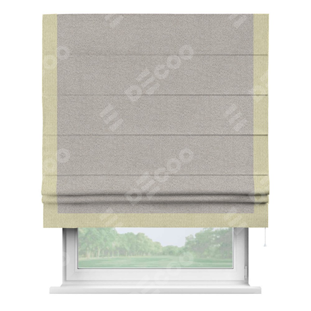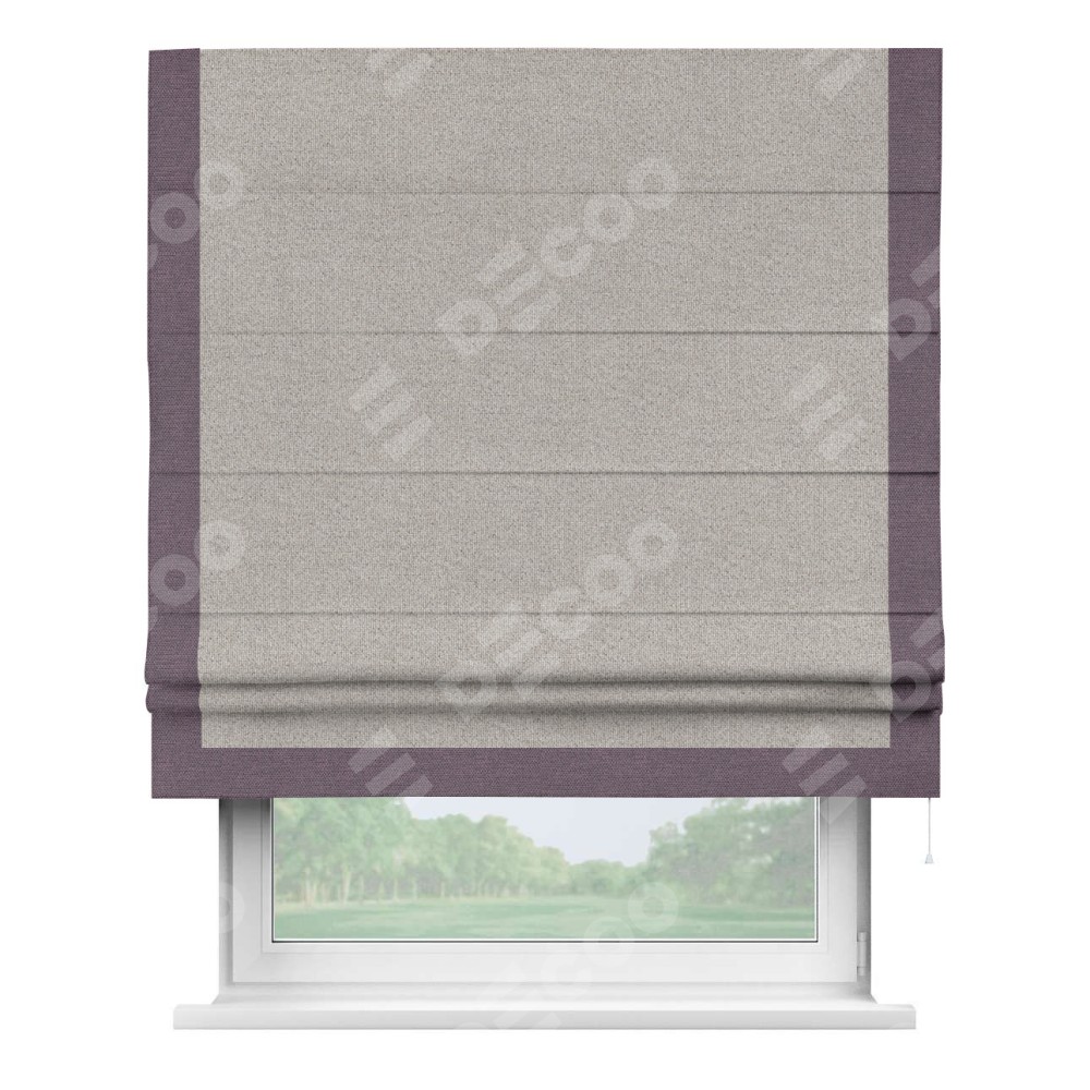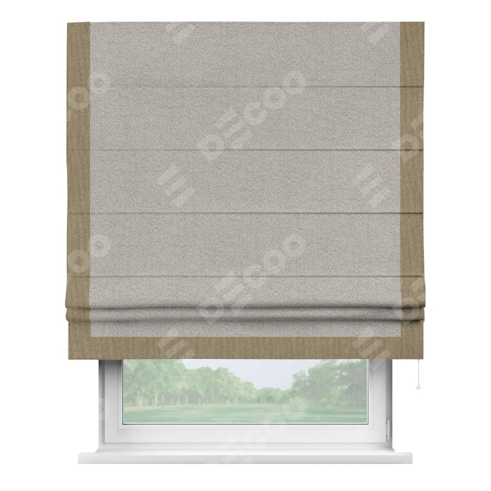 Римская штора «Кортин» для проема, лён димаут серо-бежевый с кантом Виктория