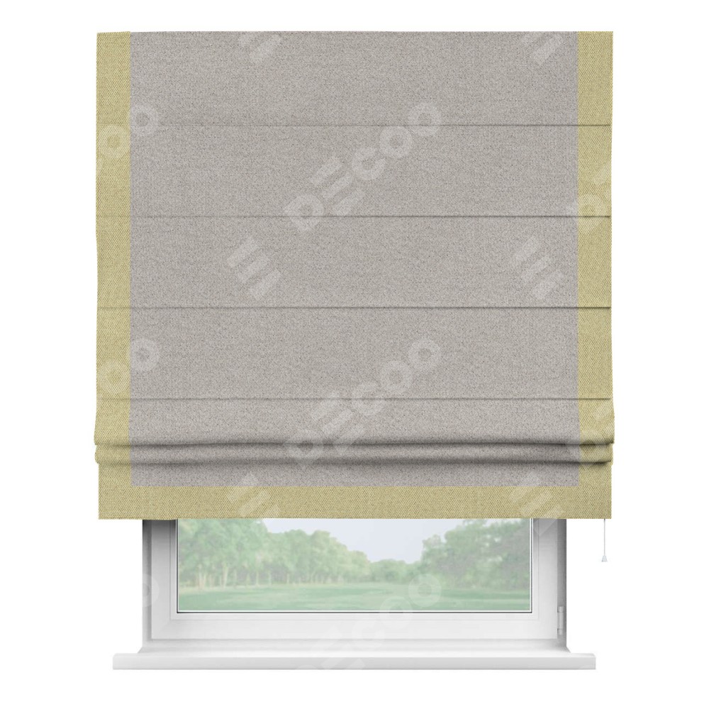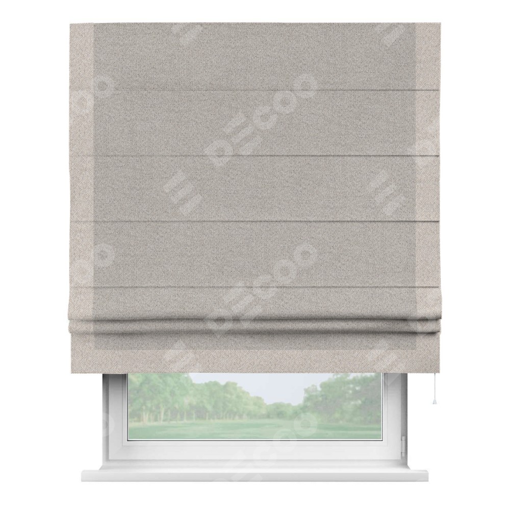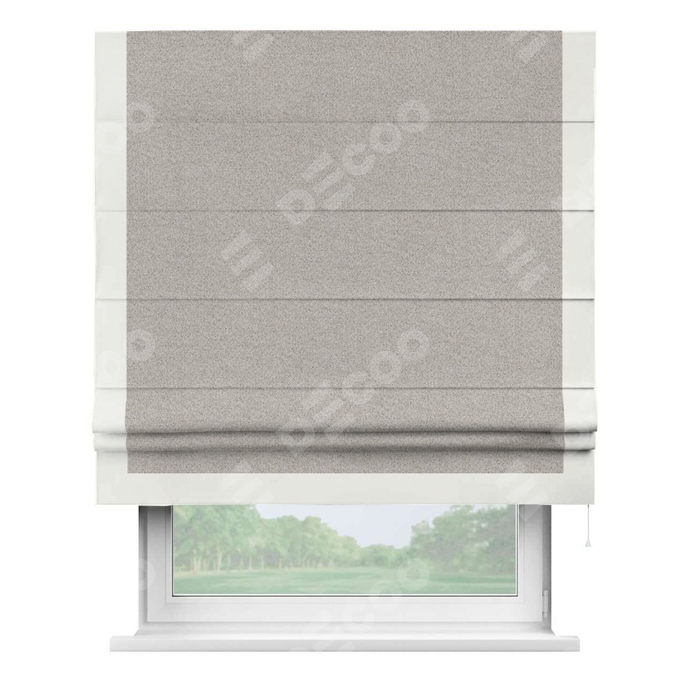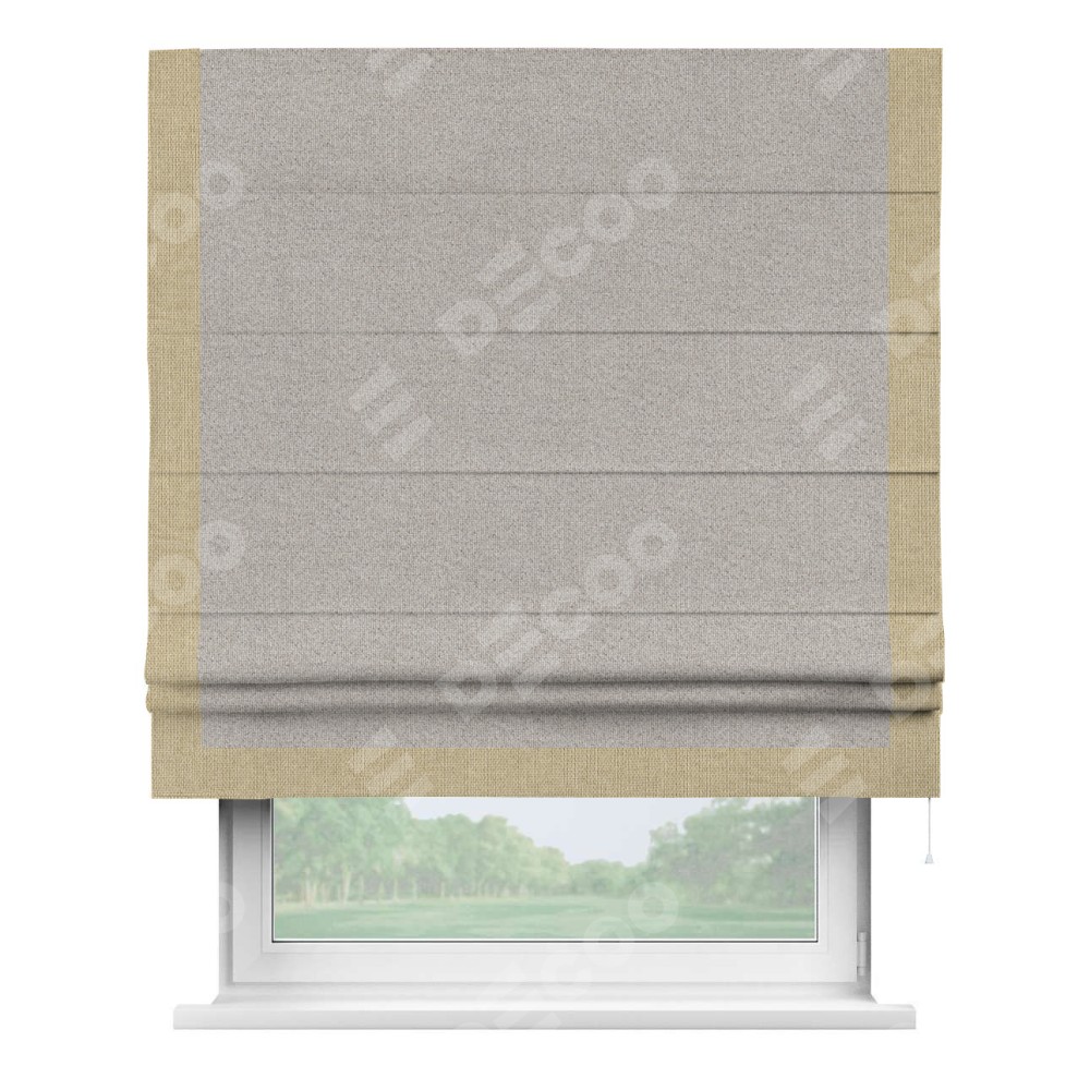 Римская штора «Кортин» для проема, лён димаут серо-бежевый с кантом Виктория