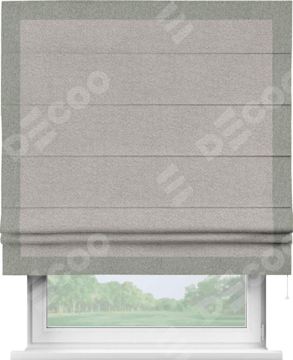 Римская штора «Кортин» для проема, лён димаут серо-бежевый с кантом Чесс