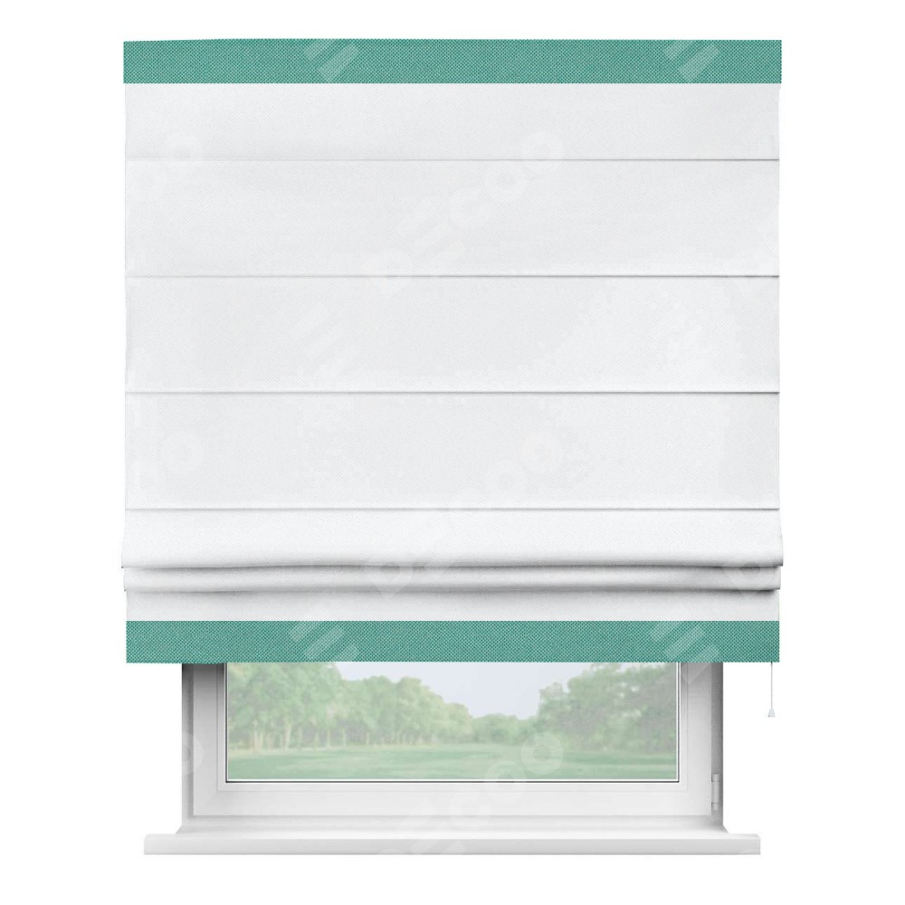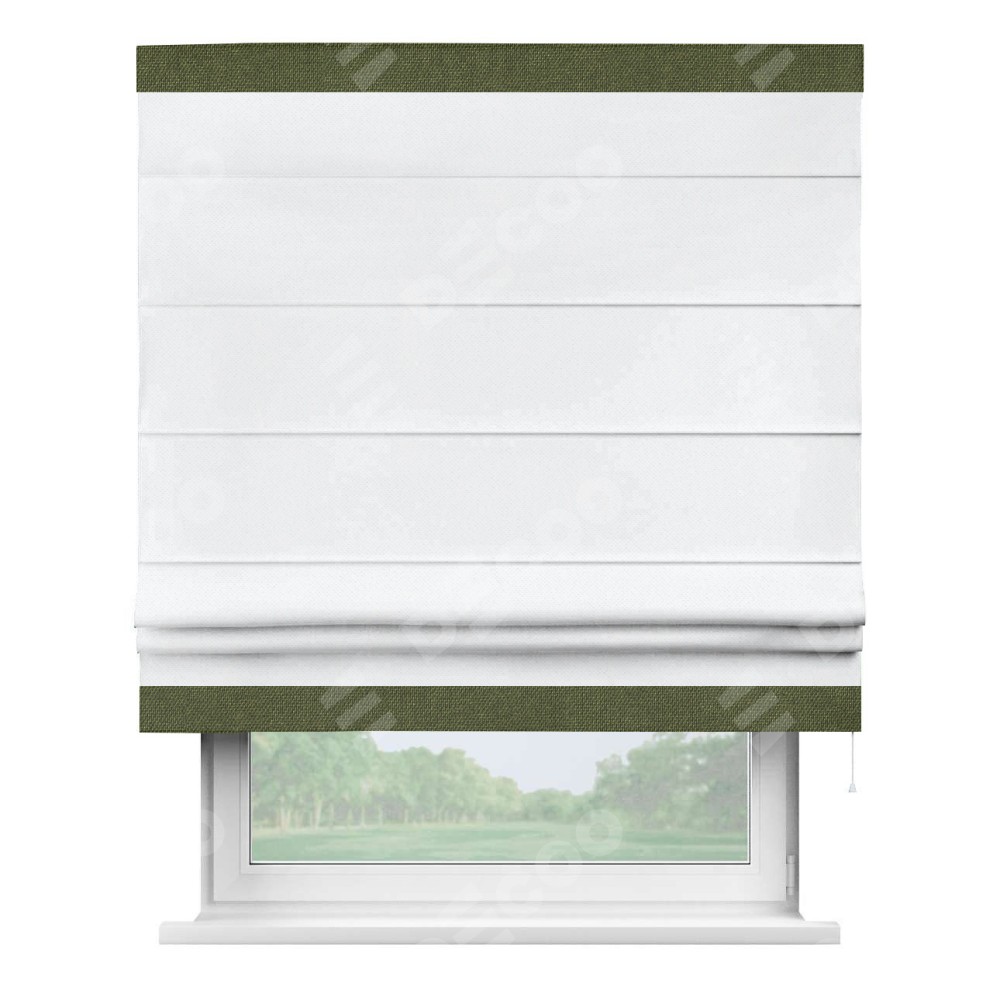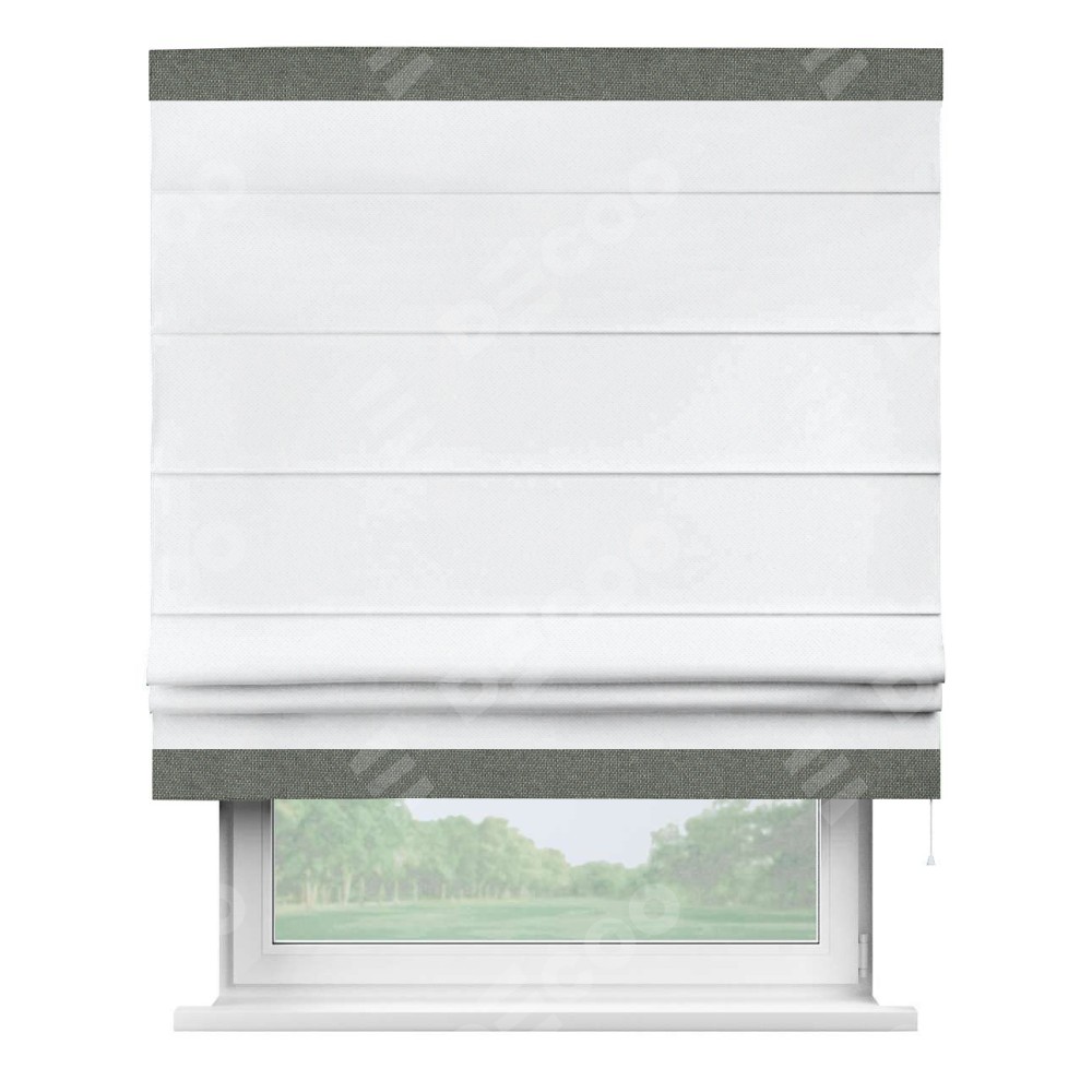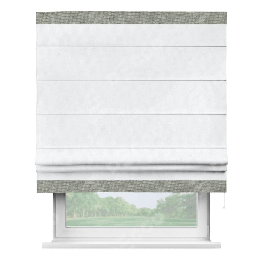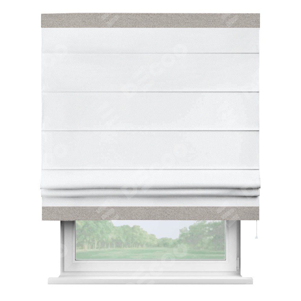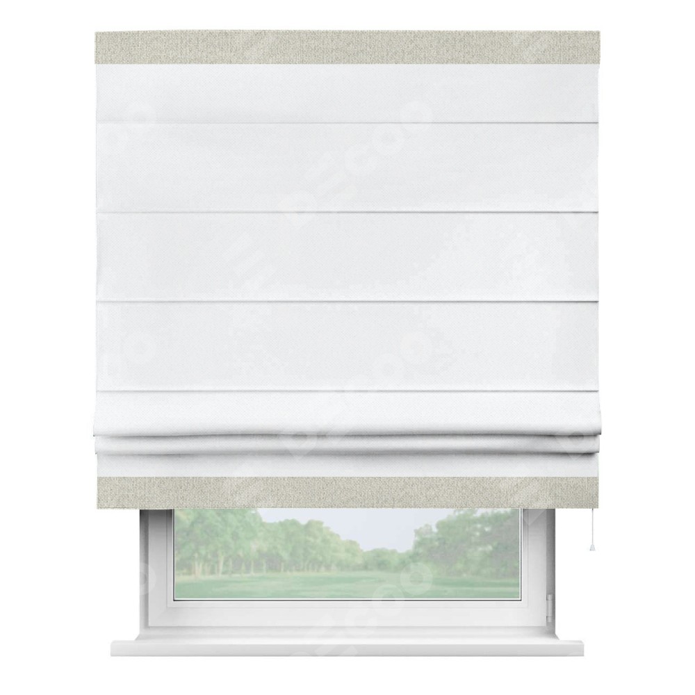 Римская штора «Кортин» для проема, лён димаут белый с кантом Горизонт
