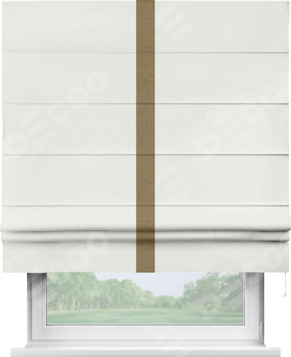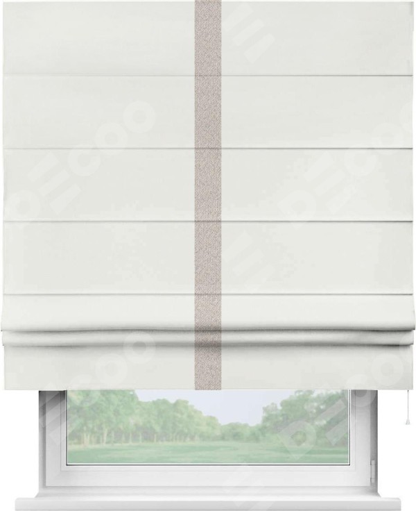 Римская штора «Кортин» для проема, лён димаут молочный с кантом Хайвэй