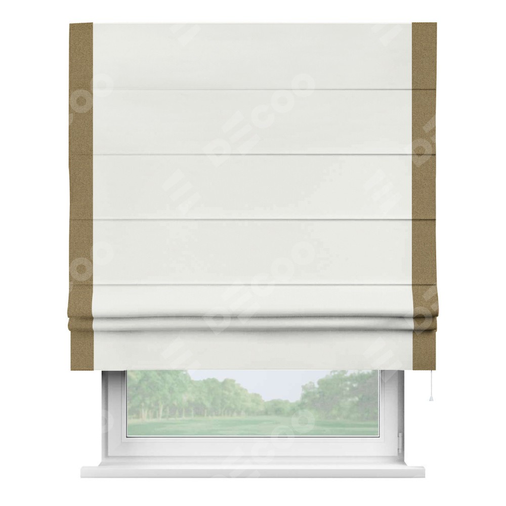 Римская штора «Кортин» для проема, лён димаут молочный с кантом Стрим Дуо