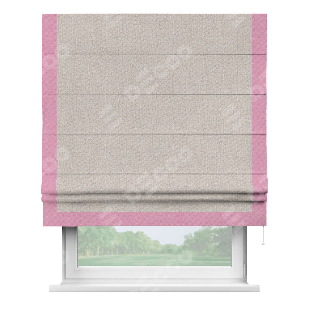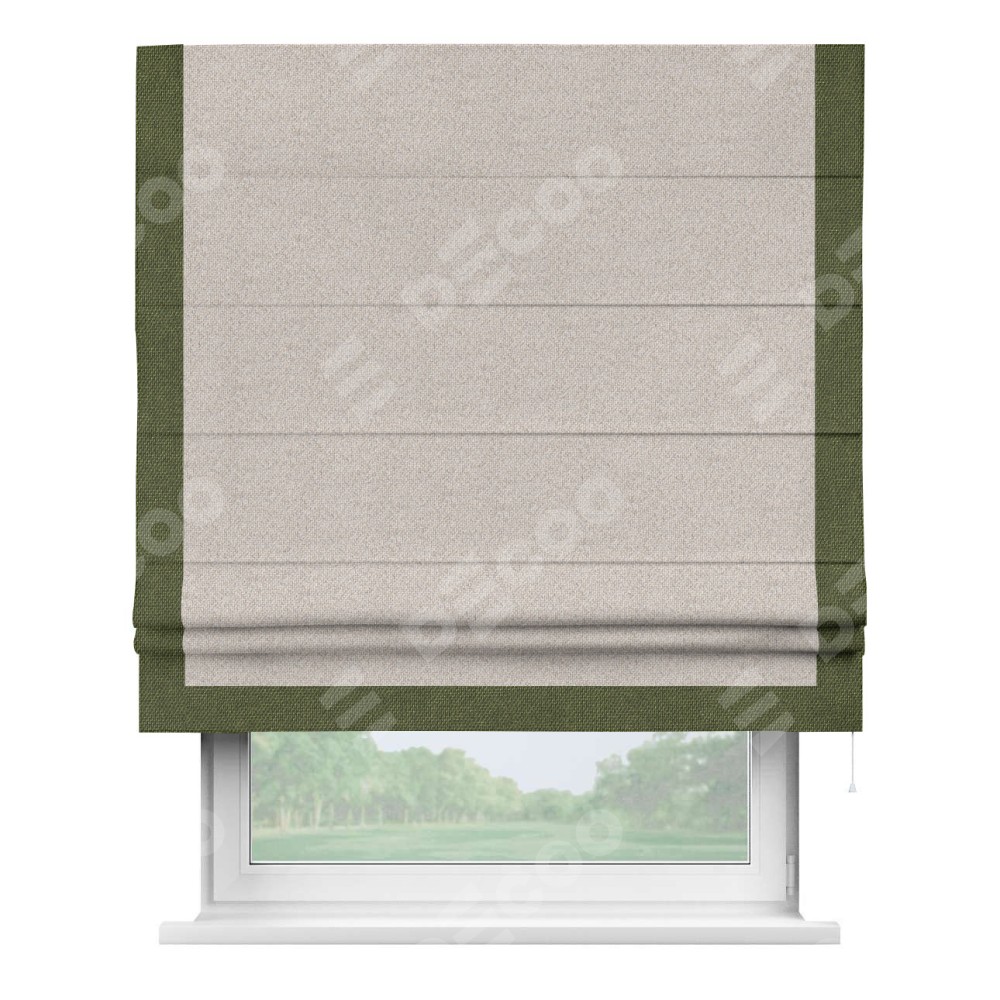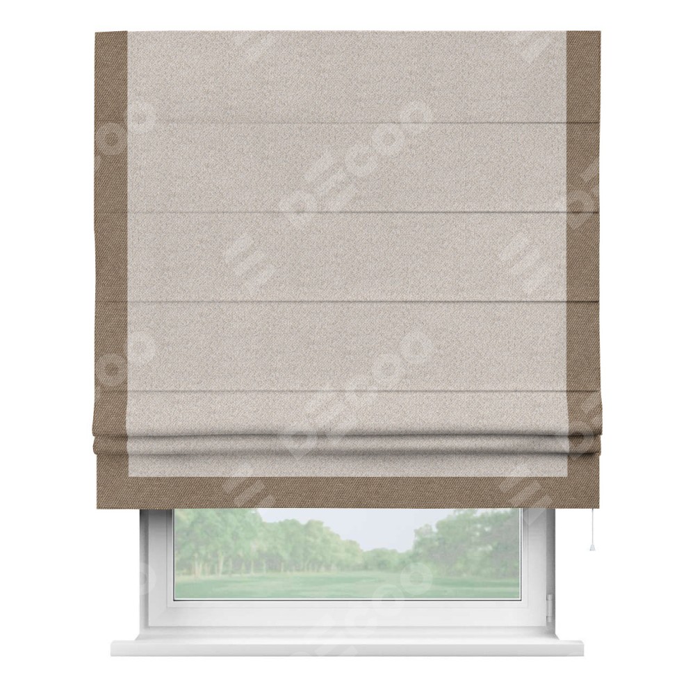 Римская штора «Кортин» для проема, лён димаут бежевый с кантом Виктория