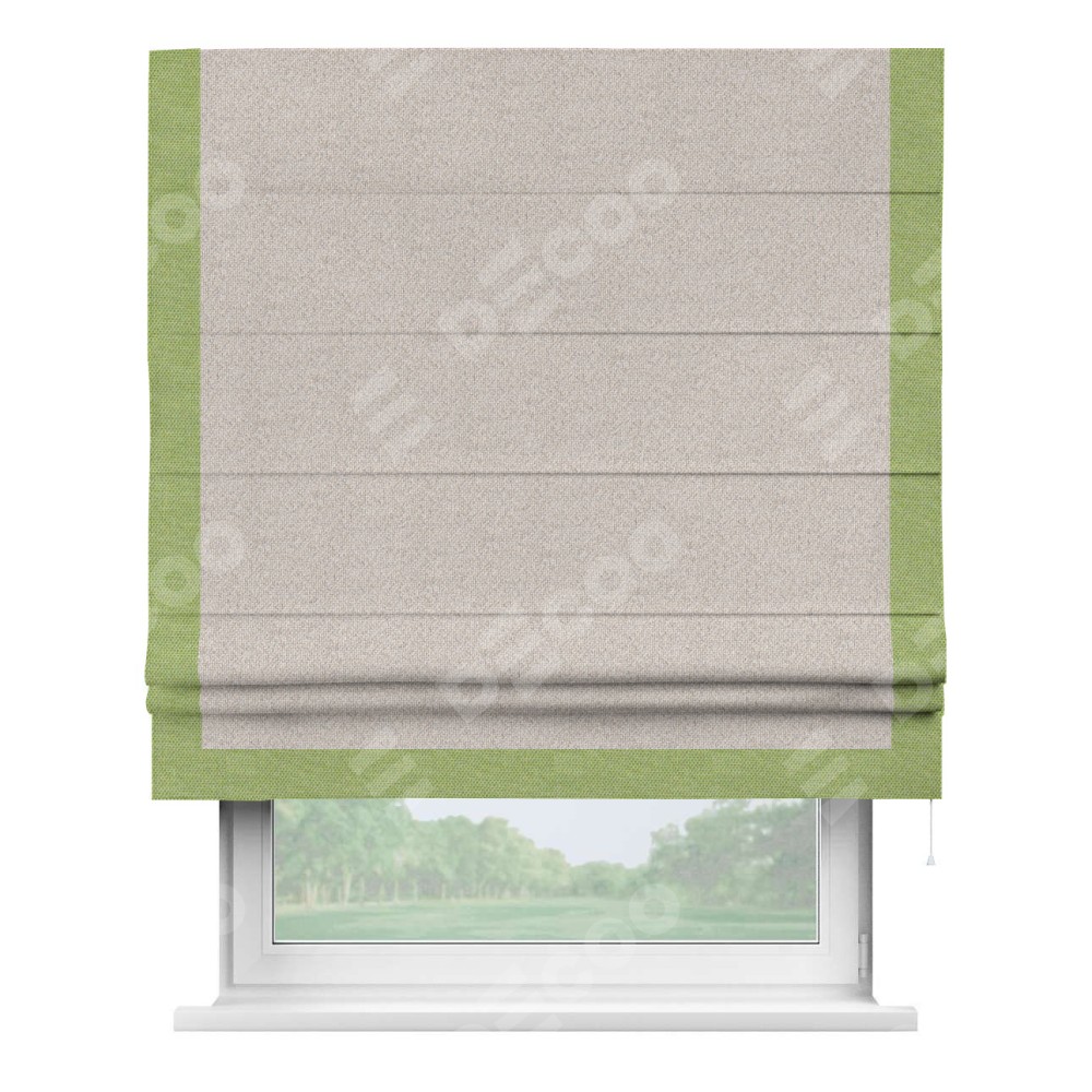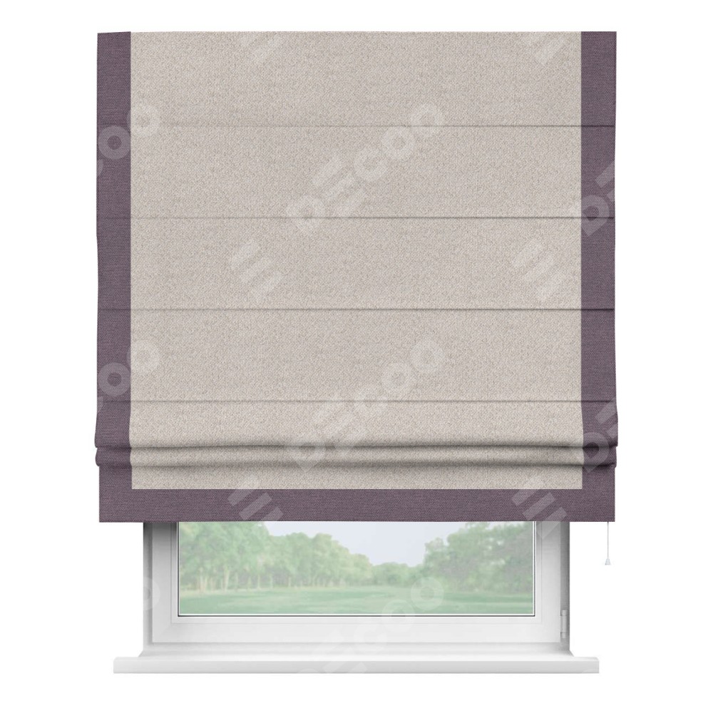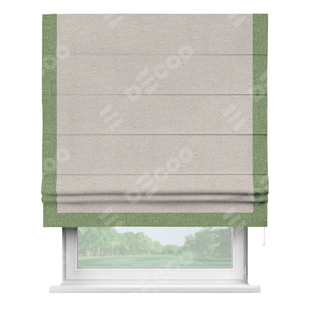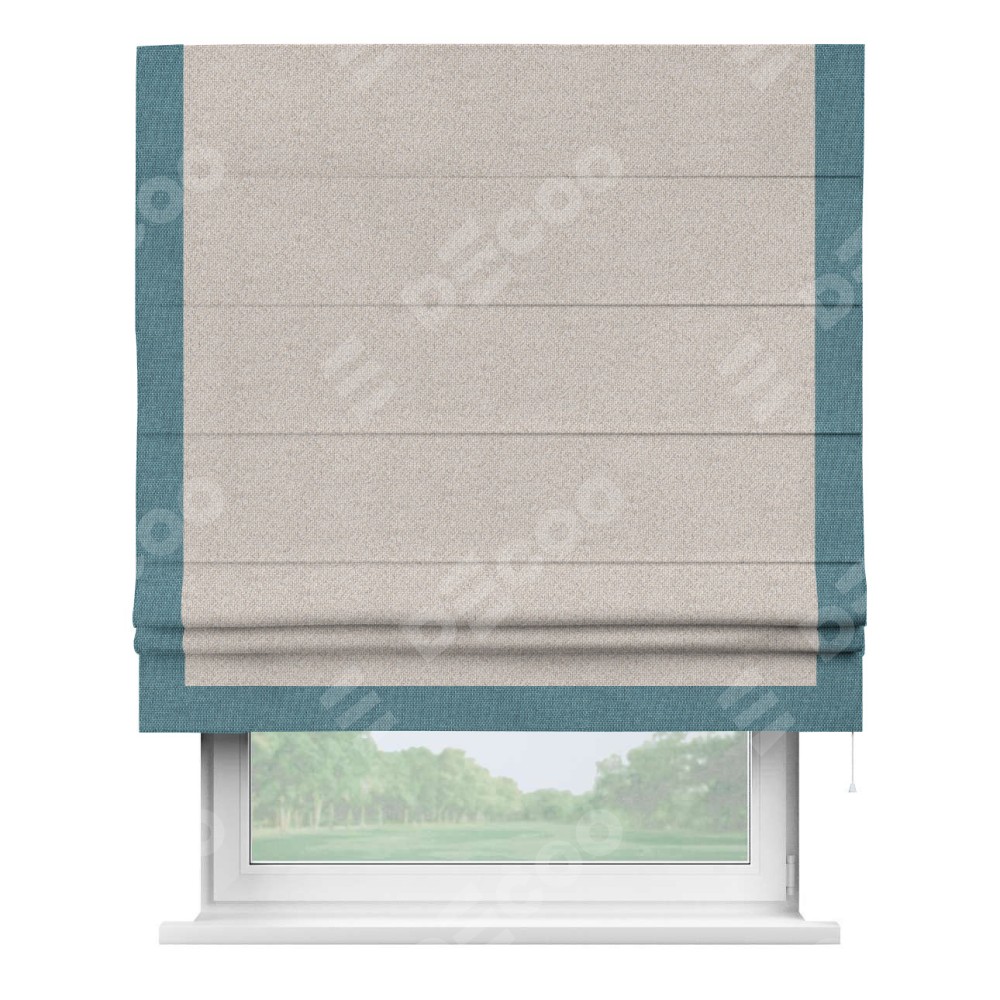 Римская штора «Кортин» для проема, лён димаут бежевый с кантом Виктория