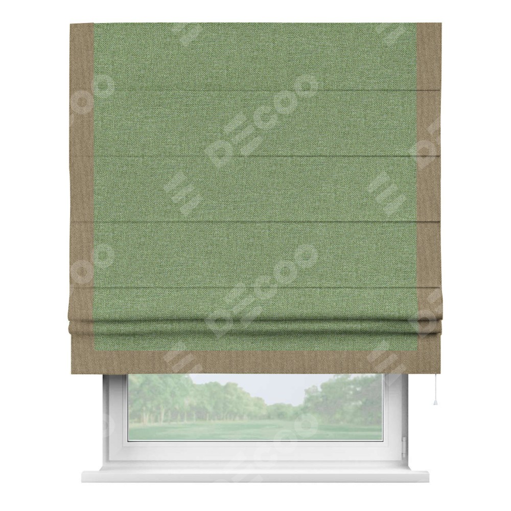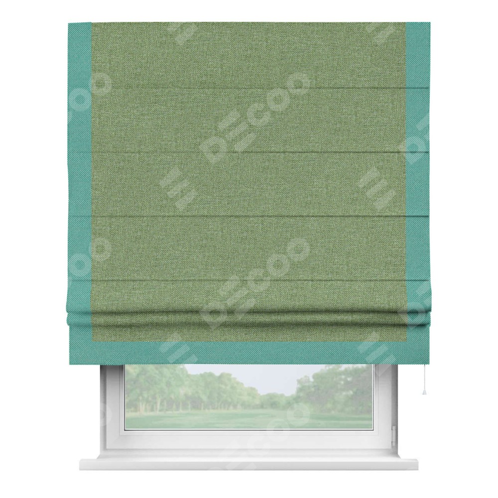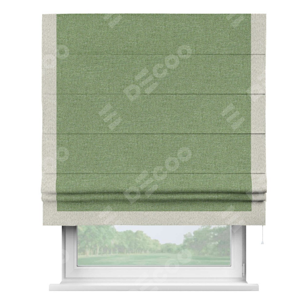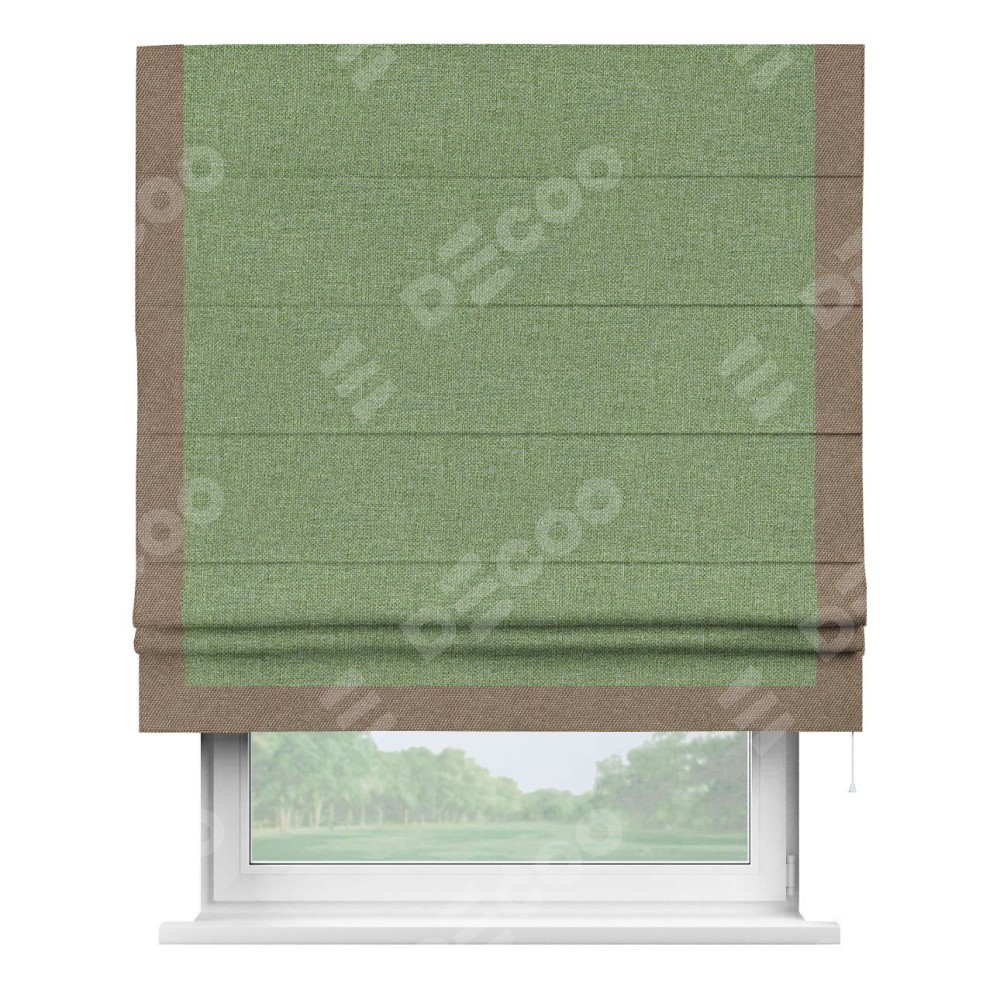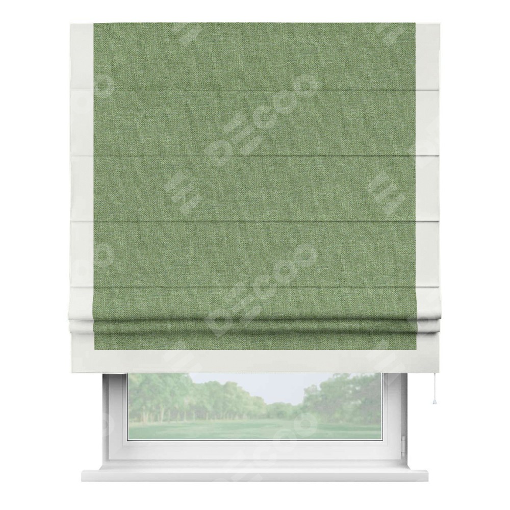Римская штора «Cortin» для проёма, лён димаут светло-салатовый с кантом Виктория