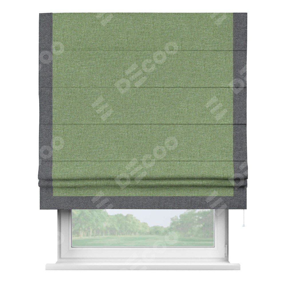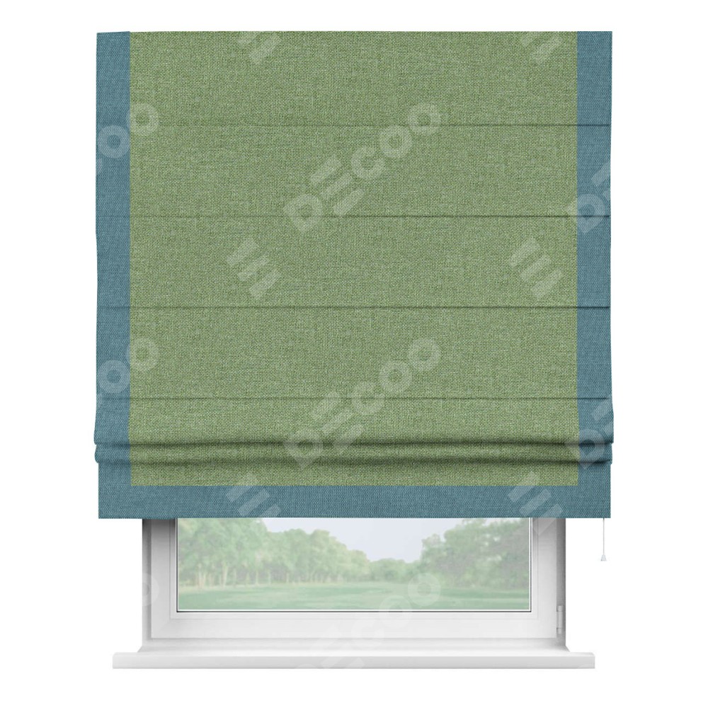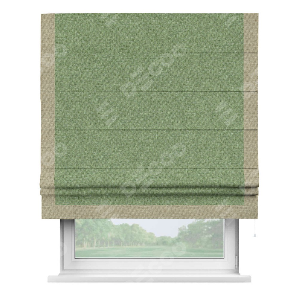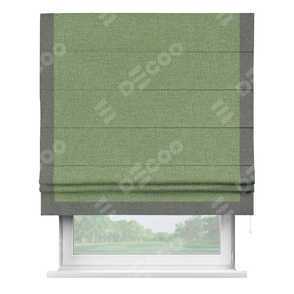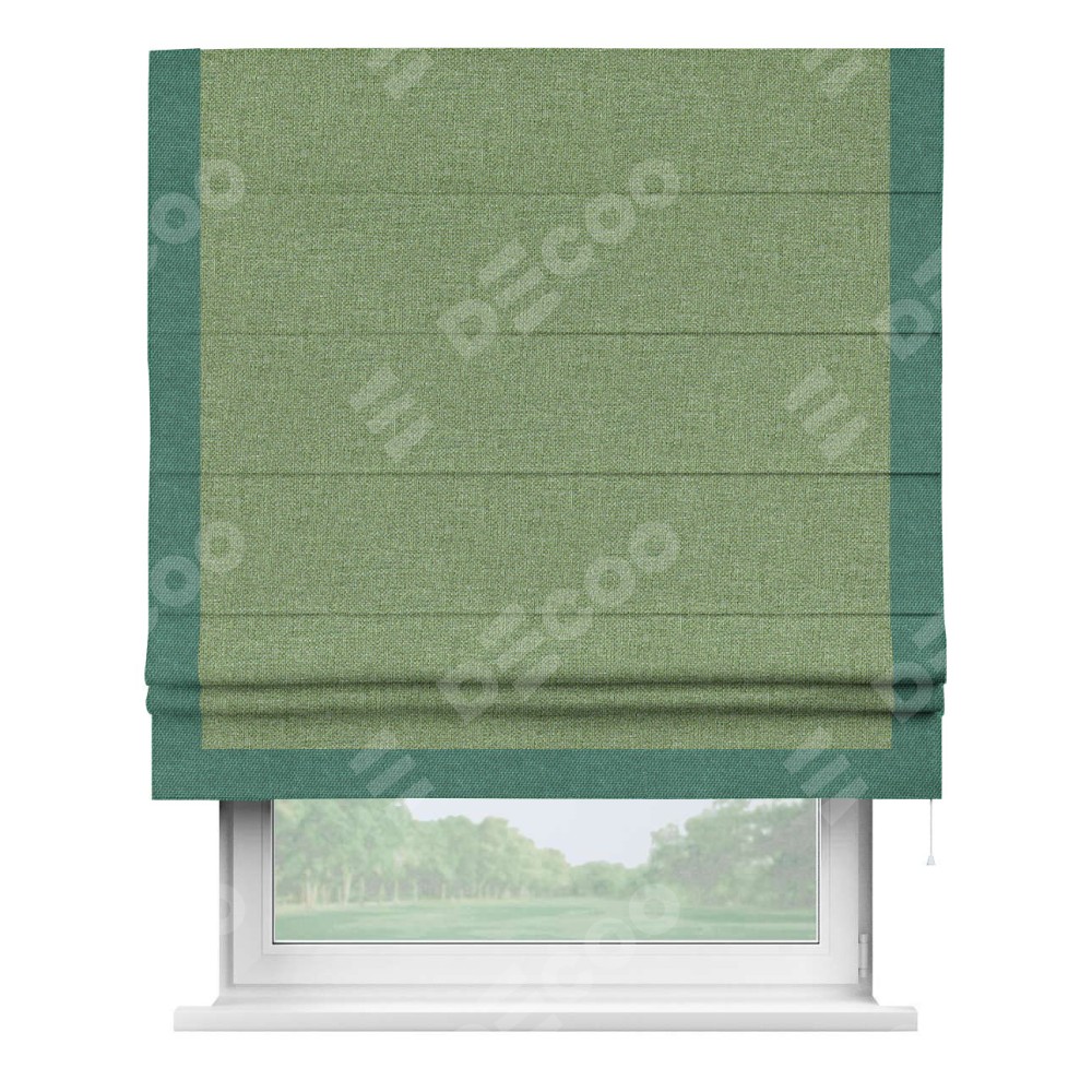 Римская штора «Cortin» для проёма, лён димаут светло-салатовый с кантом Виктория