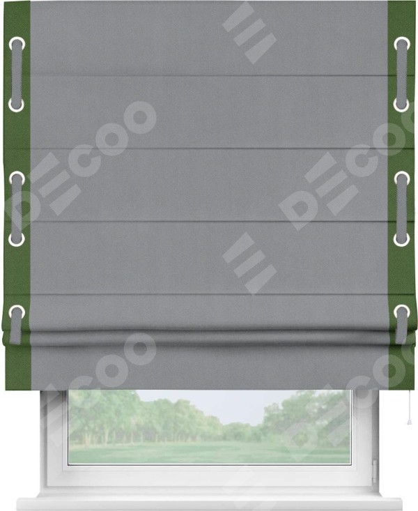 Римская штора «Кортин» для проема, блэкаут однотонный серый с кантом Стрим Дуо (люверсы с пояском)