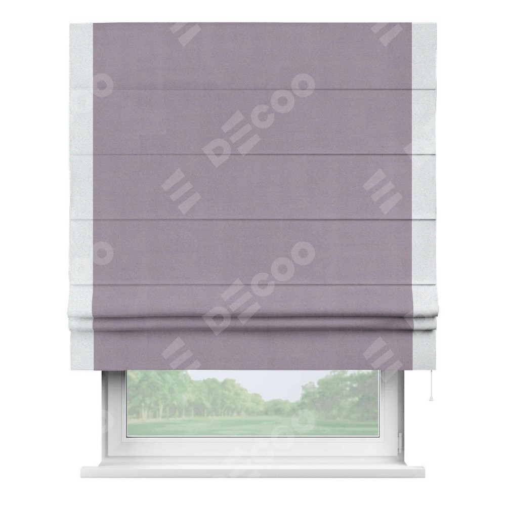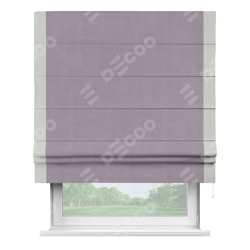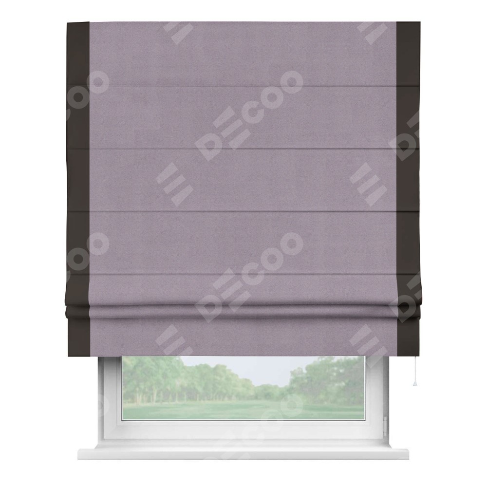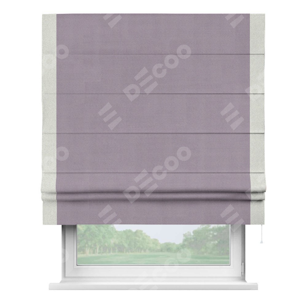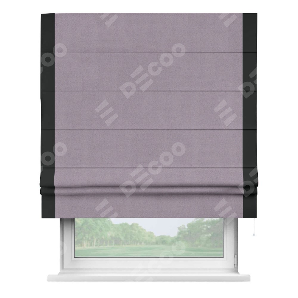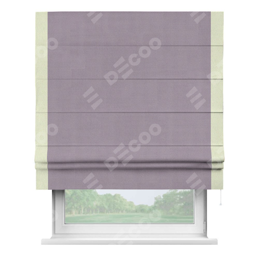 Римская штора «Кортин» для проёма, блэкаут однотонный лиловый с кантом Стрим Дуо