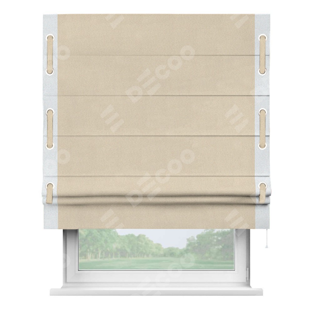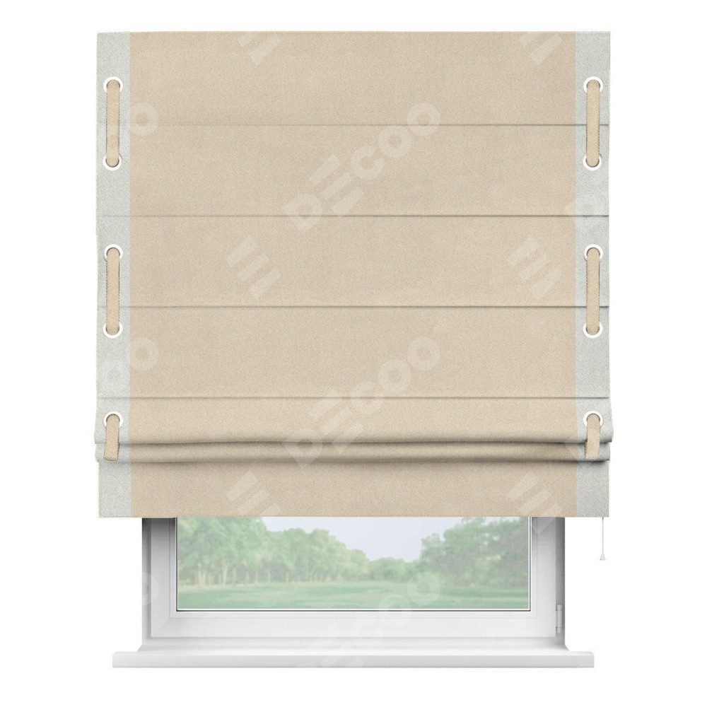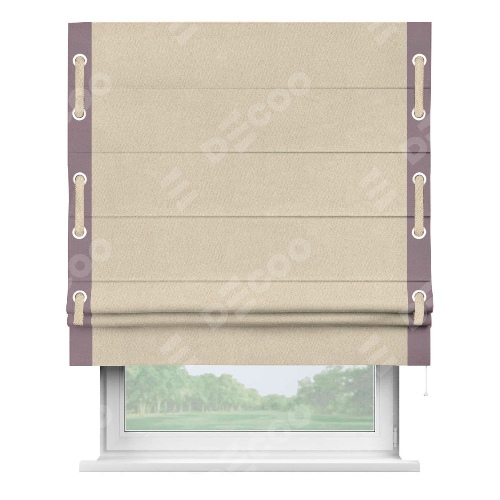 Римская штора «Cortin» для проёма, блэкаут однотонный кофейно-бежевый с кантом Стрим Дуо (люверсы с пояском)
