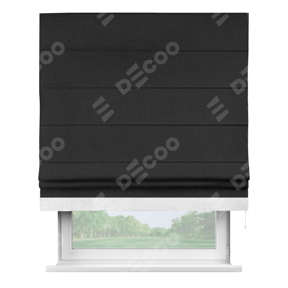 Римская штора «Кортин» для проёма, лён чёрный, с кантом Джестер