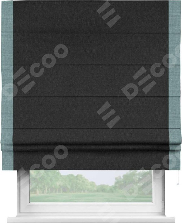 Римская штора «Кортин» для проёма, лён чёрный, с кантом Стрим Дуо