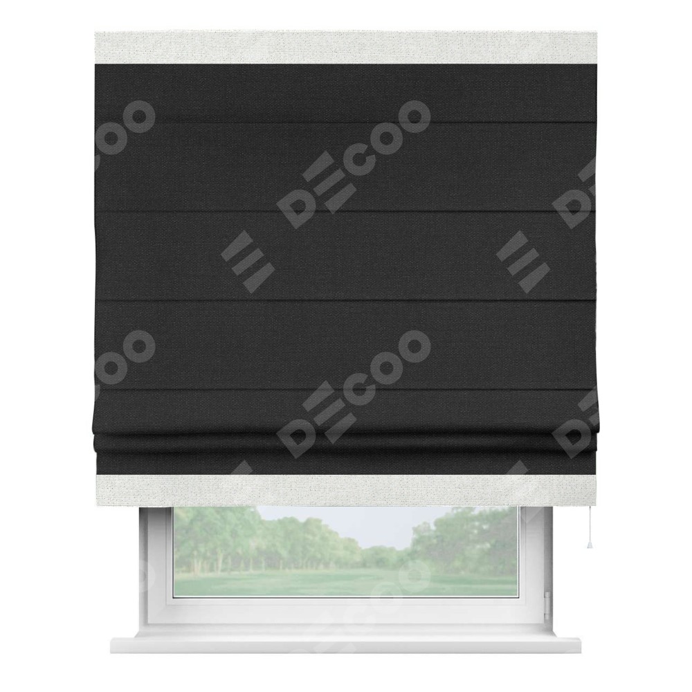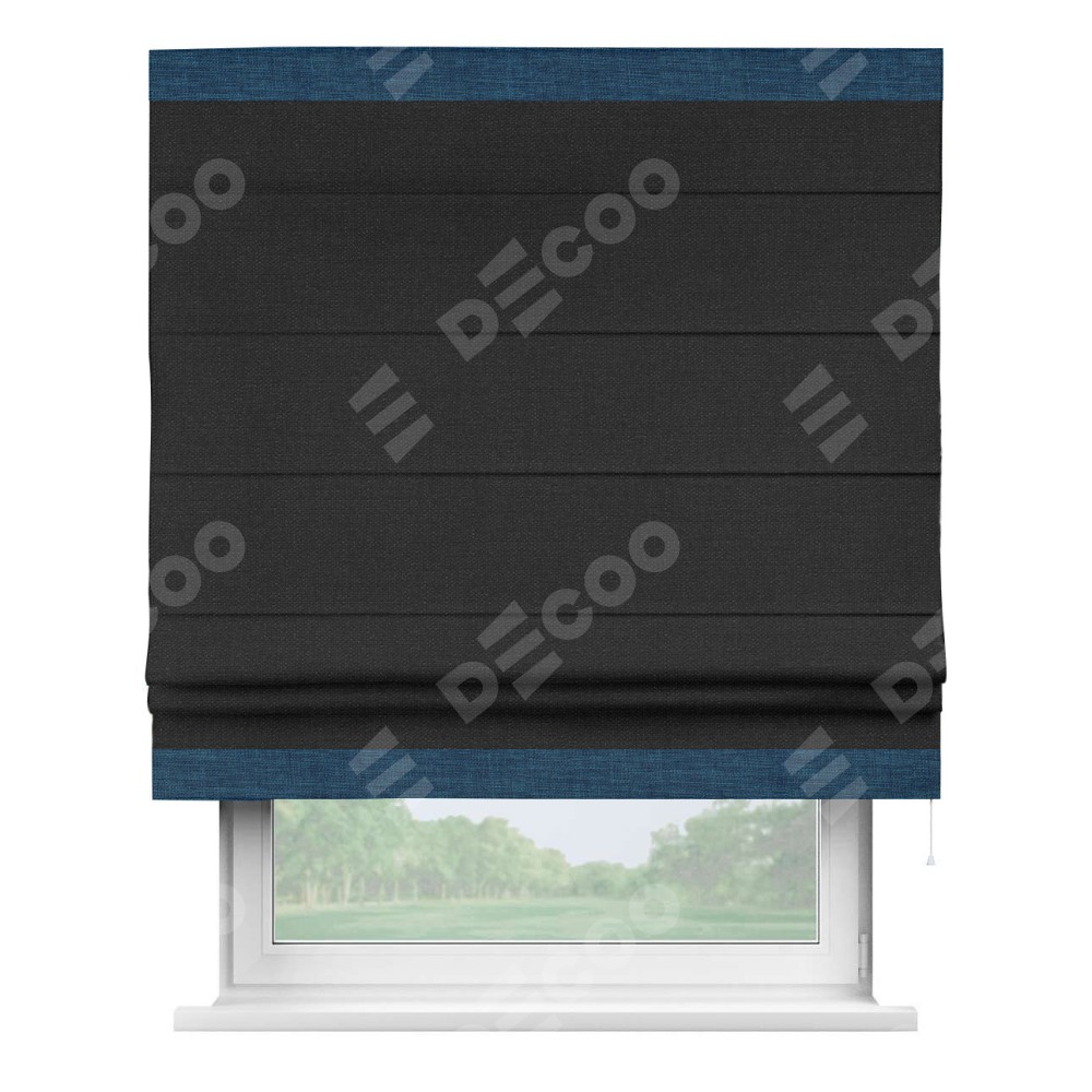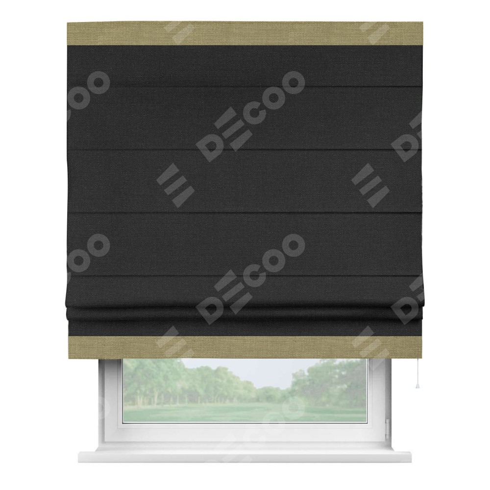 Римская штора «Кортин» для проёма, лён чёрный, с кантом Горизонт