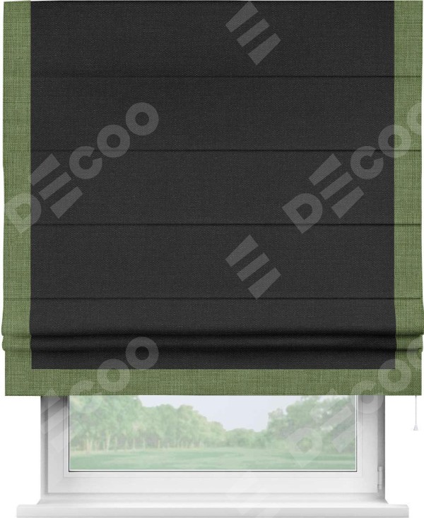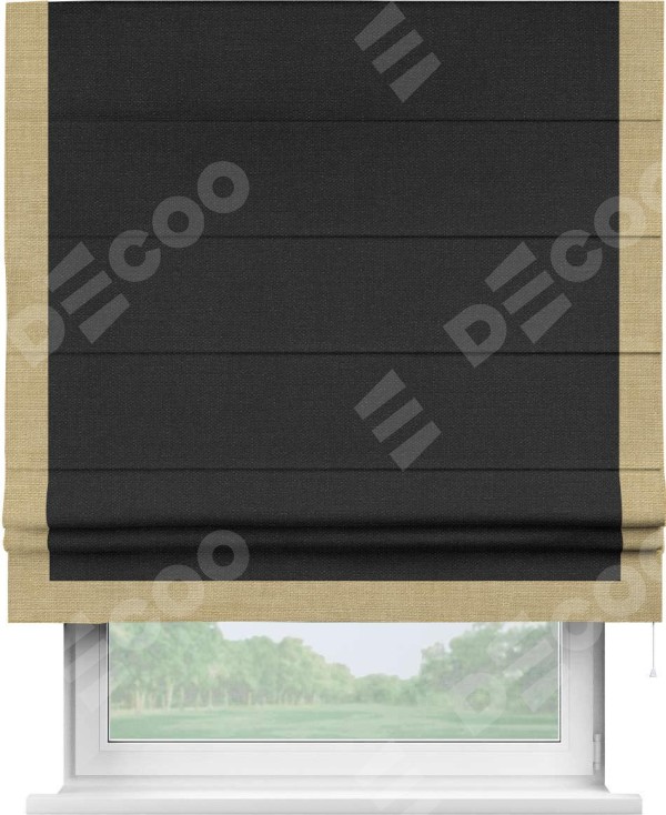 Римская штора «Кортин» для проёма, лён чёрный, с кантом Виктория