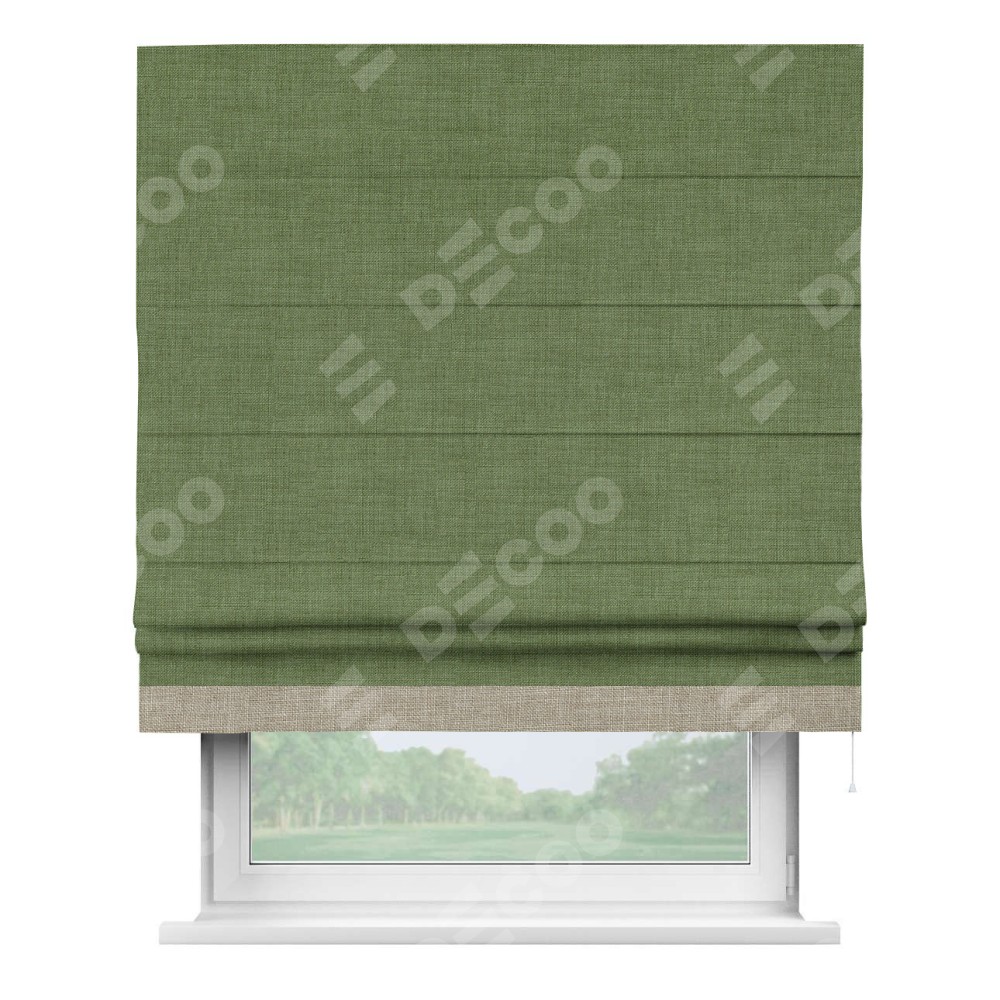 Римская штора «Кортин» для проёма, лён зелёный, с кантом Джестер