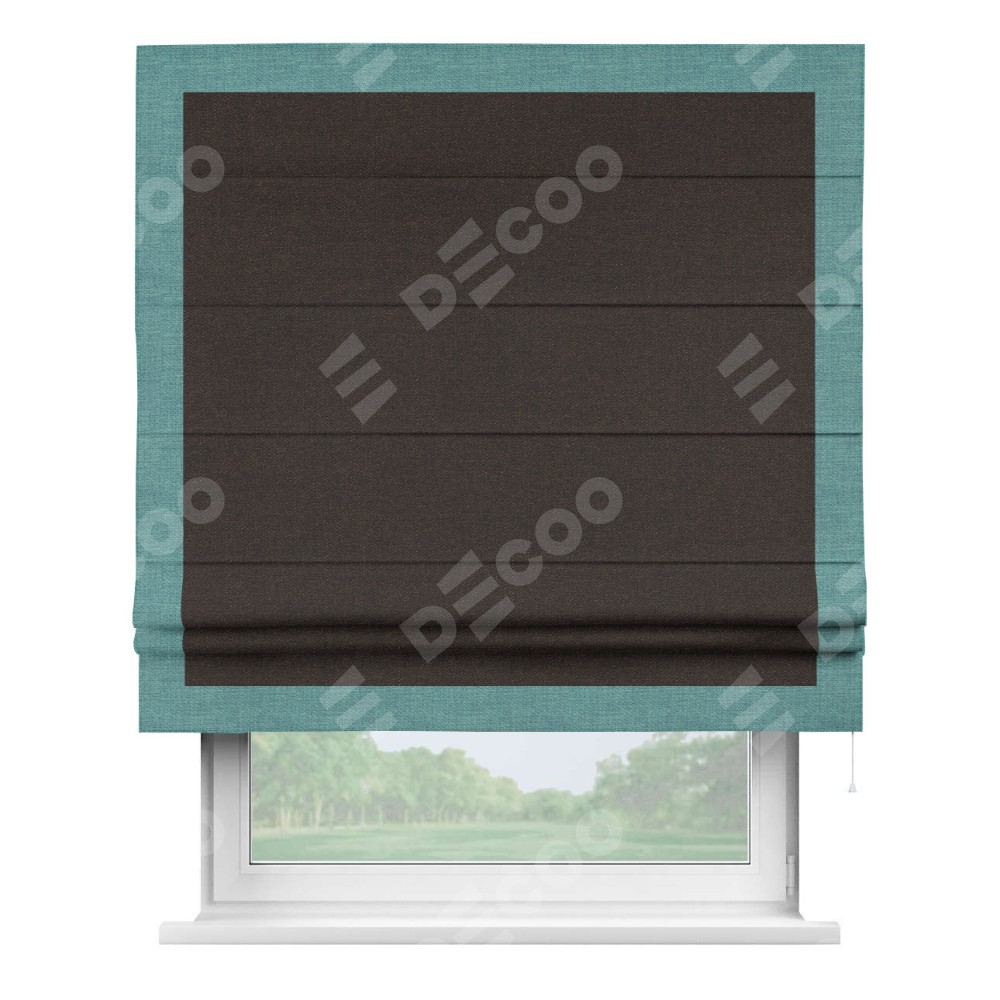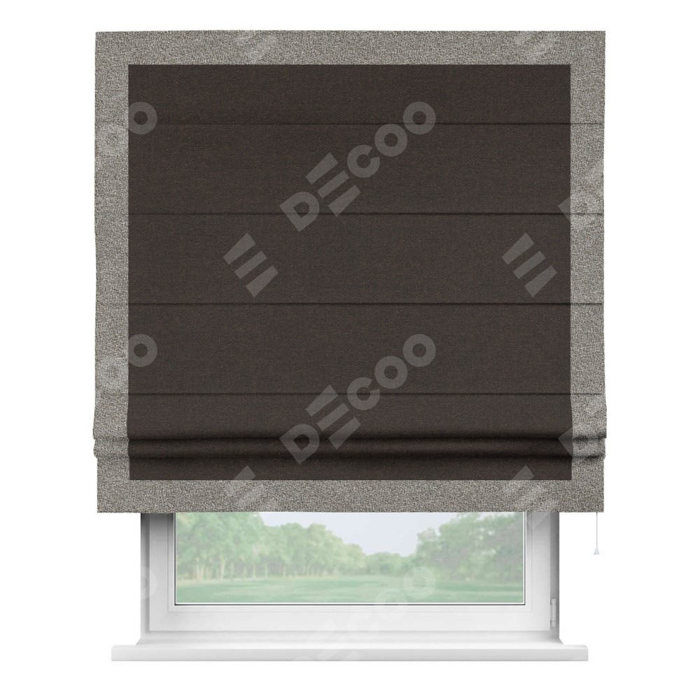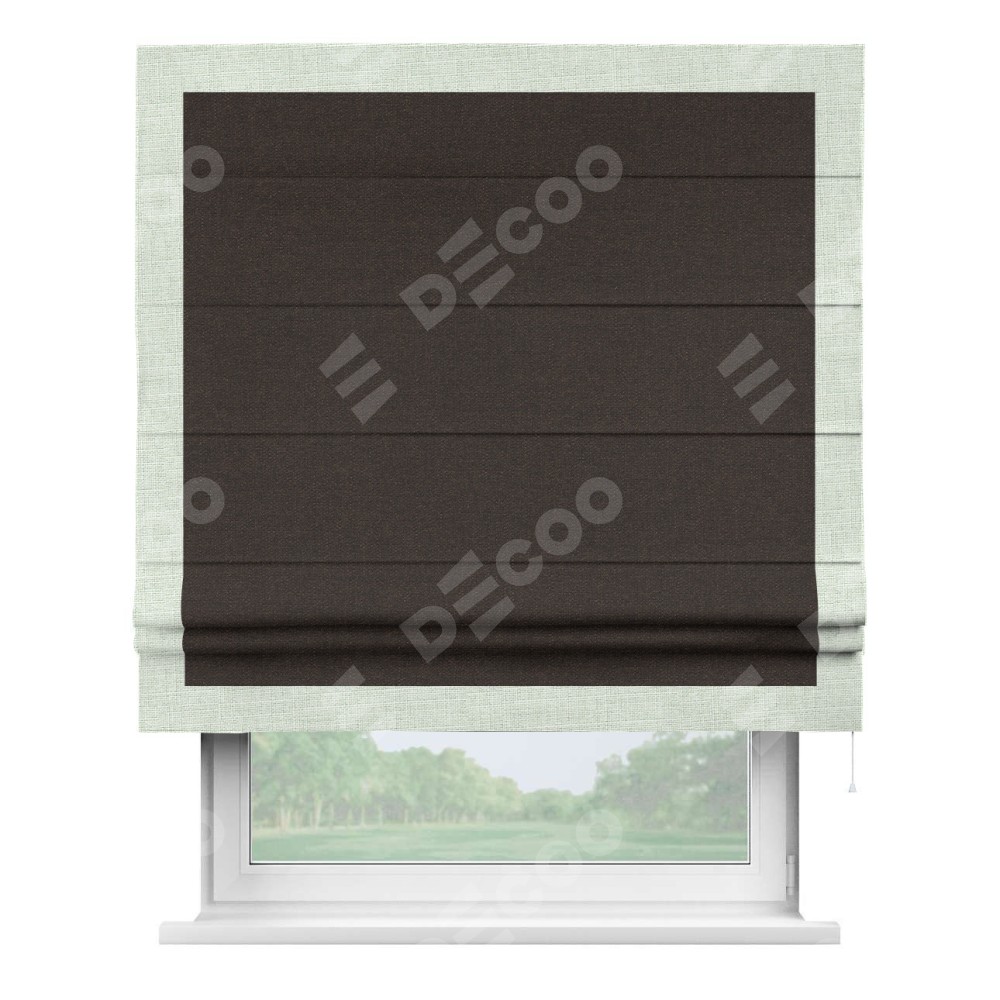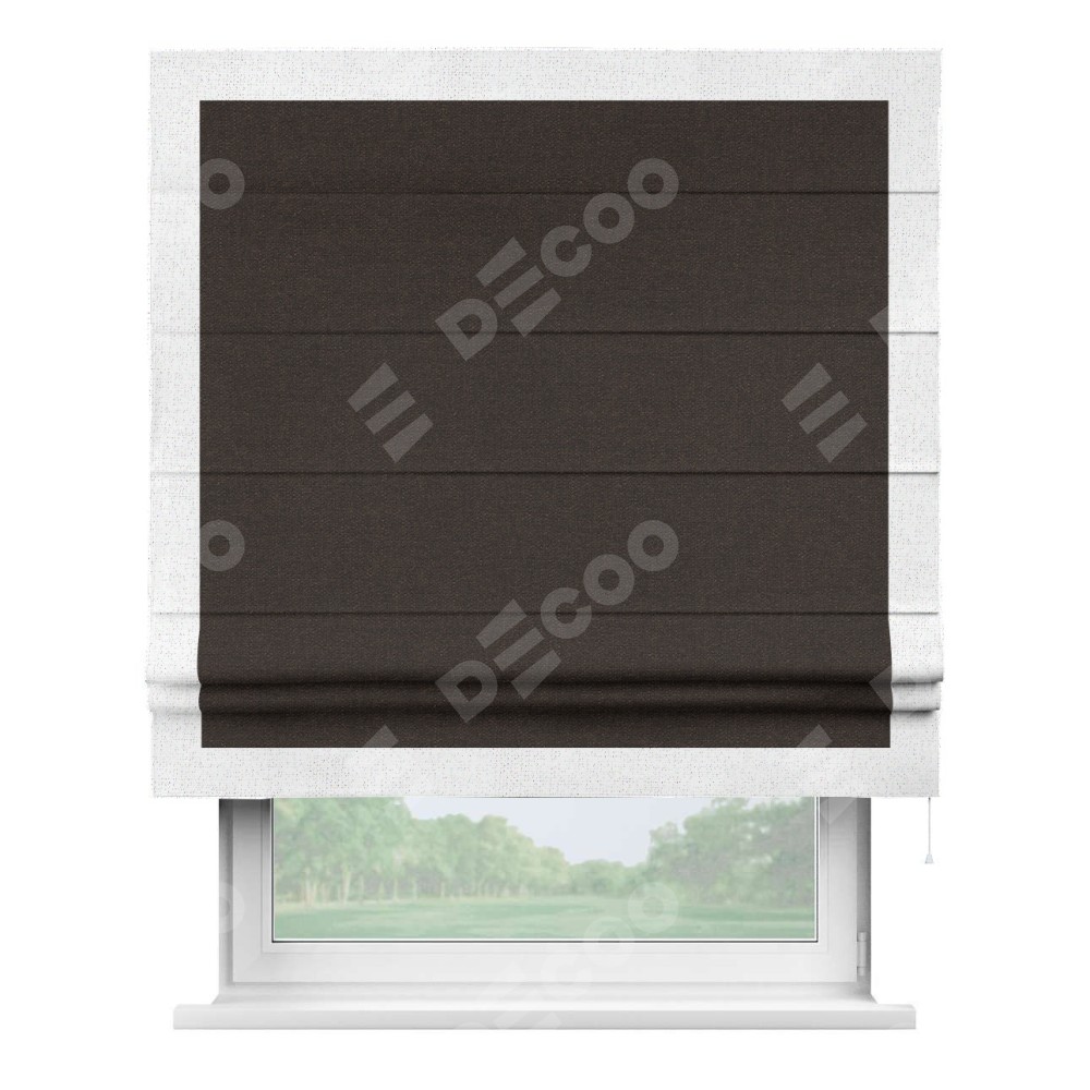 Классическая римская штора производителя «Cortin», пошита из ткани лён тёмно-коричневый, артикул: 104497. Имеет универсальный механизм и подходит для монтажа: на потолок, на стену и в нишу.