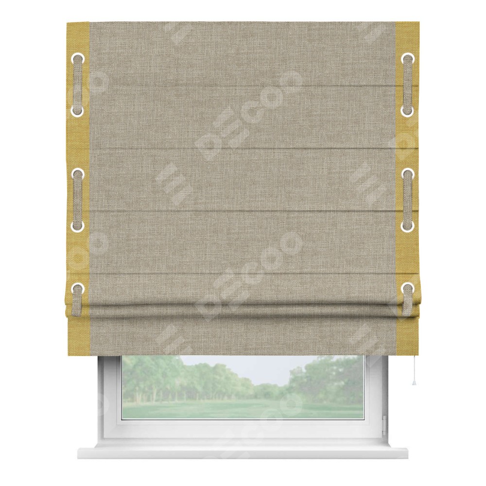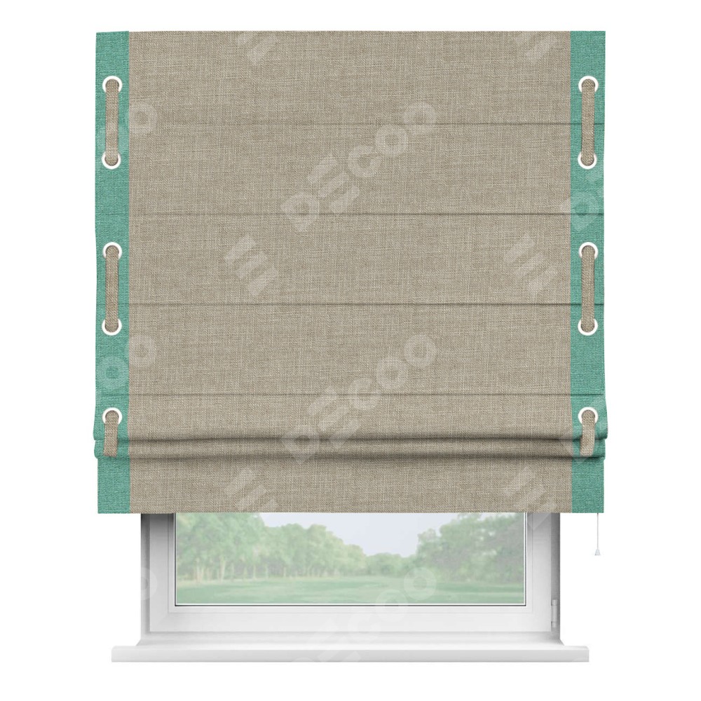 Римская штора «Кортин» для проёма, лён бежевый, с кантом Стрим Дуо (люверсы с пояском)