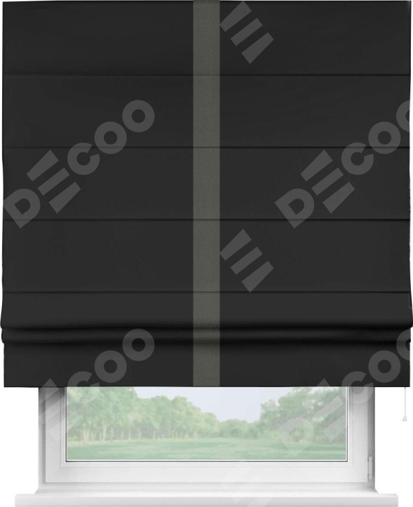 Римская штора «Cortin» для проёма, блэкаут однотонный черный с кантом Хайвэй