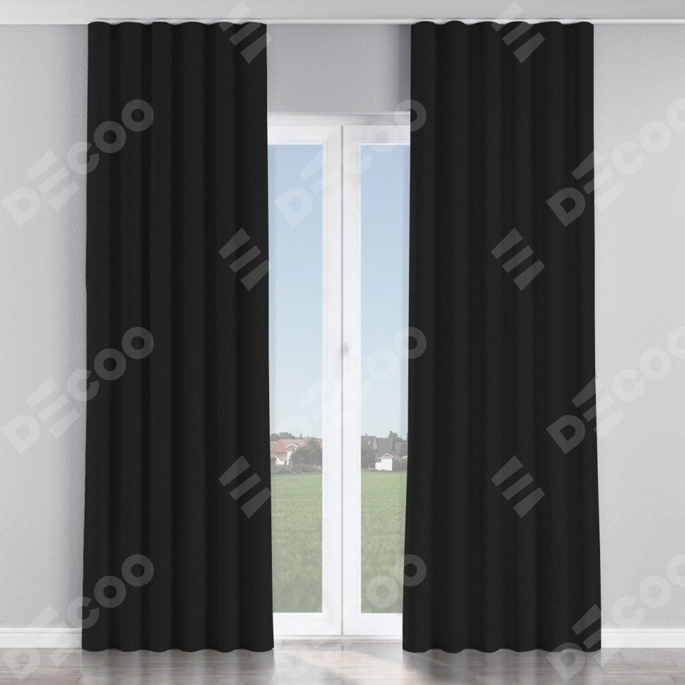 Комплект прямых штор, от производителя «Cortin», пошиты из ткани лён рустик черный, артикул ткани 145313. С изнаночной стороны в верхней части штор пристрачивается шторная лента с декоративными складками «Волна». Для создания элегантных складок рекомендуемый коэффициент 1:2 (на 100 см. ширины проёма 200 см. ширины ткани). Важно! Ширина штор указана без учёта коэффициента сборки!
