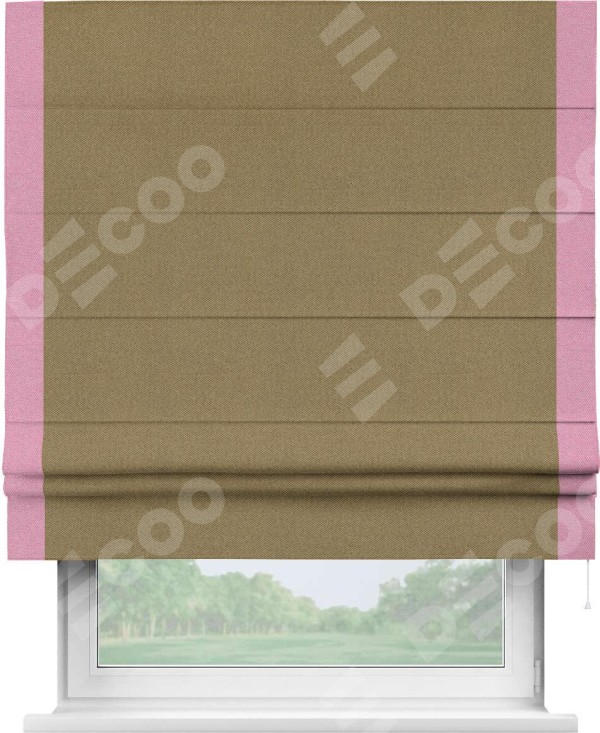 Римская штора «Кортин» с кантом Стрим Дуо, для проема, ткань лён димаут, оливковый