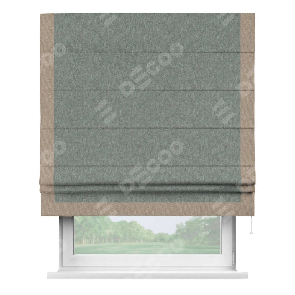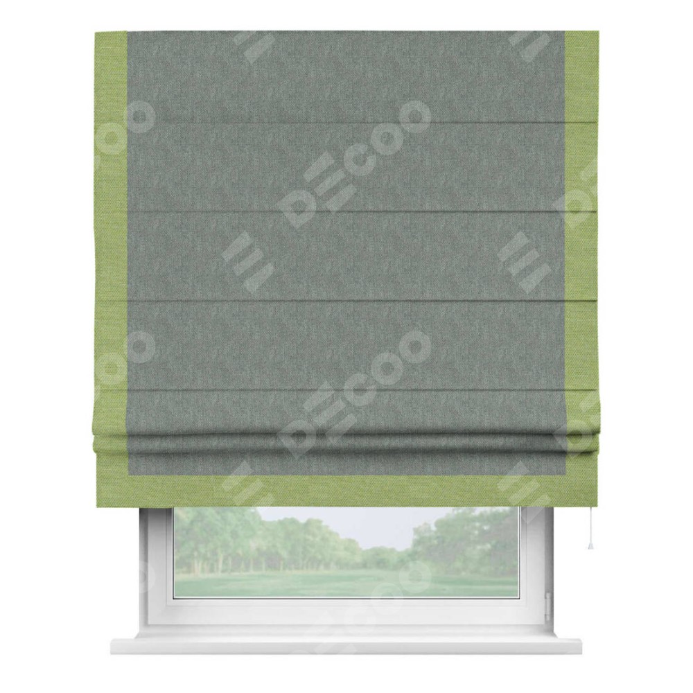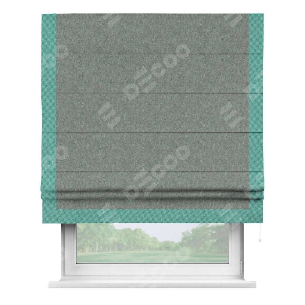 Римская штора производителя «Cortin», используется для проёма, пошита из ткани лён димаут серый, артикул 16240. Отделка шторы кантом «Виктория», ткань для канта используется из льна димаут разной расцветки на выбор. Имеет универсальный механизм и подходит для монтажа: на потолок, на стену и в нишу.