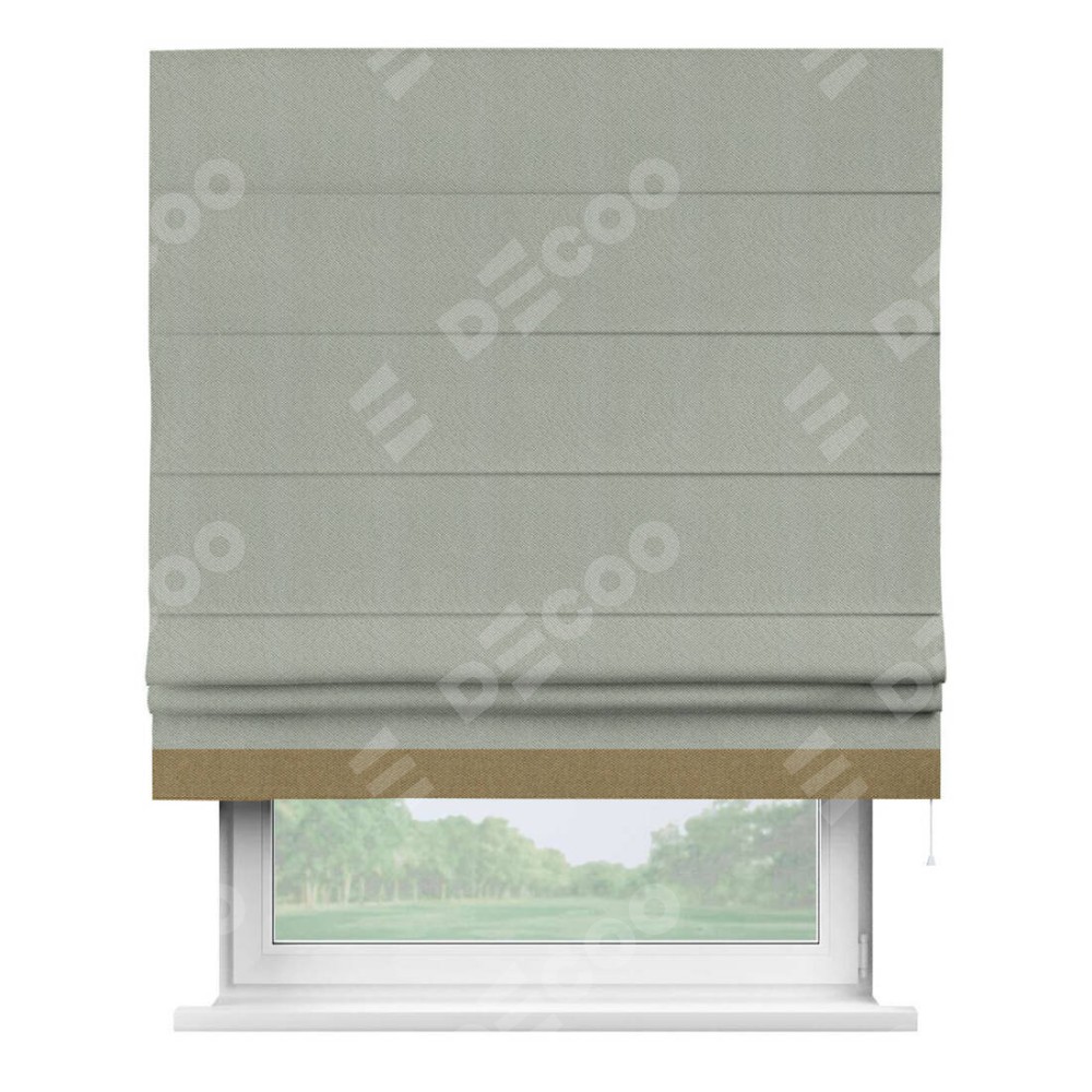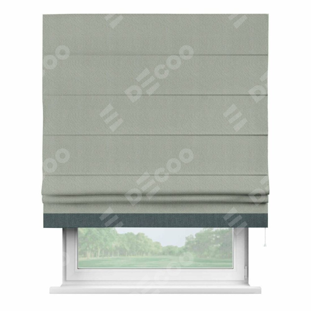 Римская штора производителя «Cortin», используется для проёма, пошита из ткани лён димаут серый, артикул ф3. Отделка шторы кантом «Джестер», ткань для канта используется из льна димаут разной расцветки на выбор. Имеет универсальный механизм и подходит для монтажа: на потолок, на стену и в нишу.