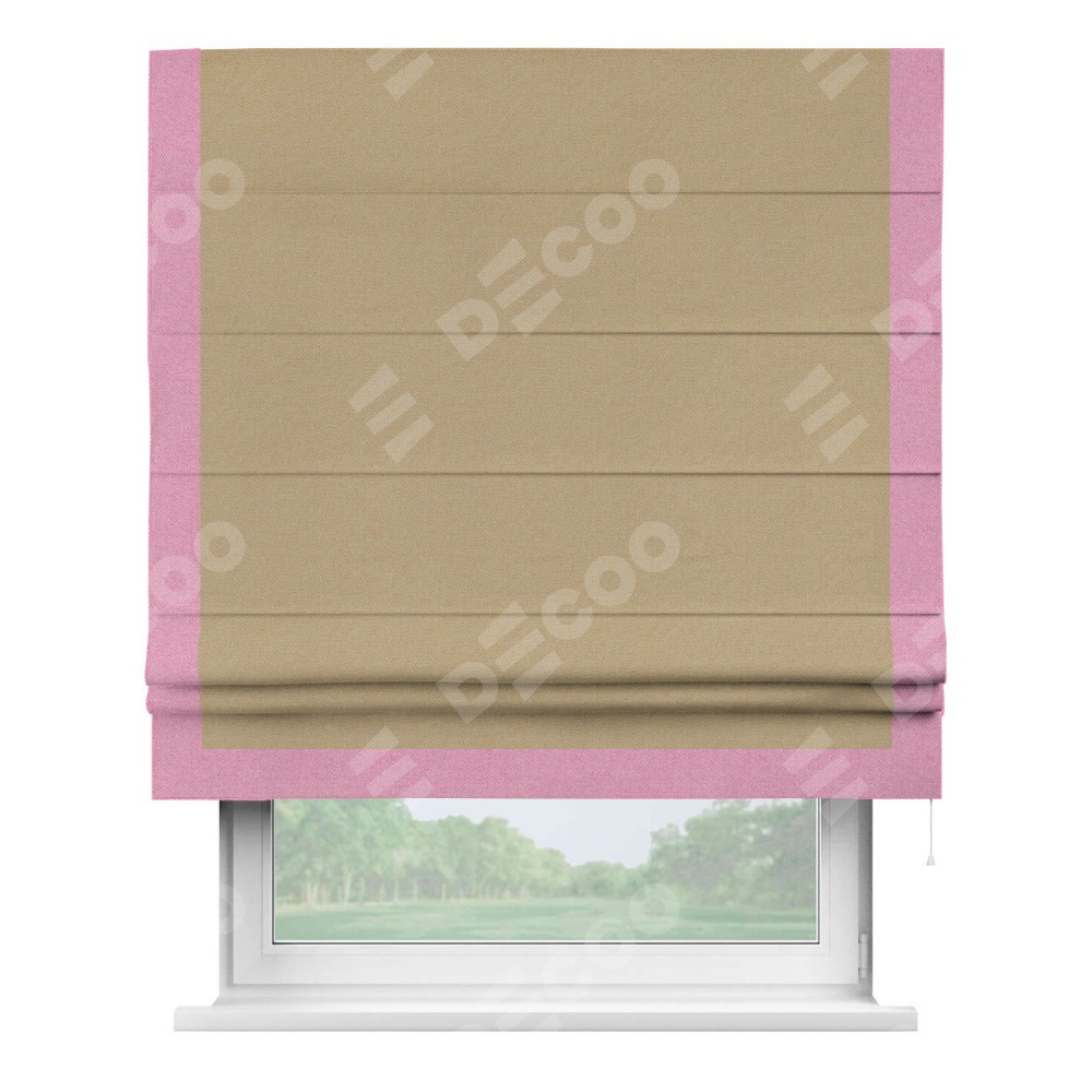 Римская штора «Кортин» с кантом Виктория, для проема, ткань лён димаут, тёмно-бежевый