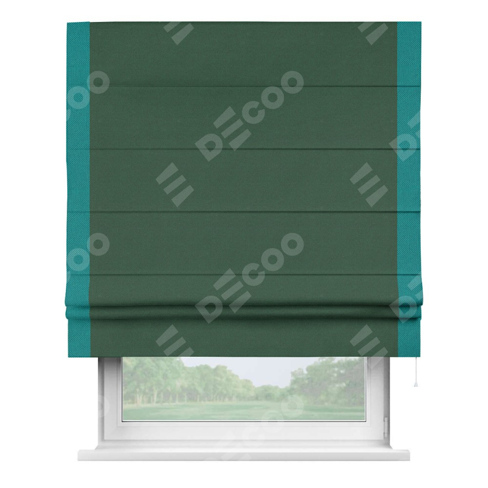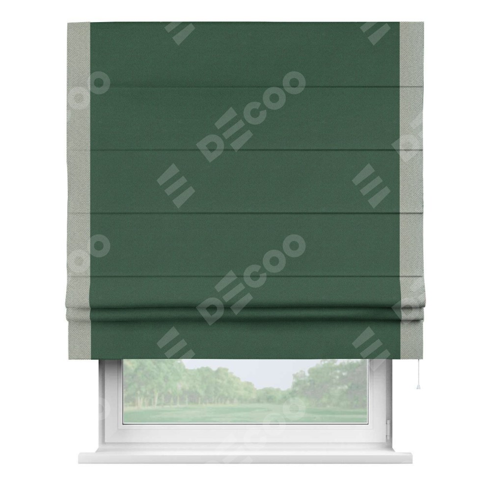 Римская штора «Кортин» с кантом Стрим Дуо, для проема, ткань лён димаут, тёмно-зелёный