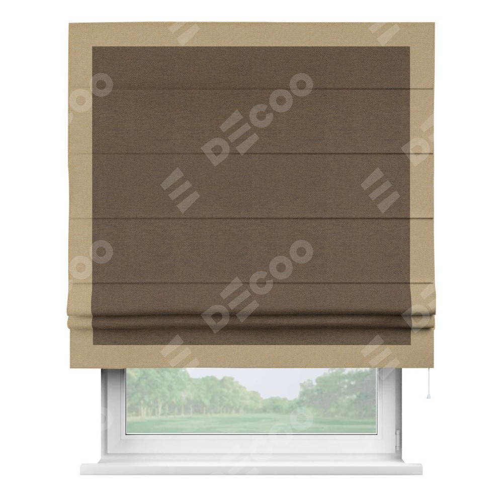 Римская штора «Кортин» с кантом Чесс, для проема, ткань лён димаут, тёмно-коричневый