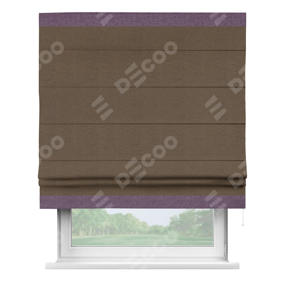 Римская штора «Кортин» с кантом Горизонт, для проема, ткань лён димаут, тёмно-коричневый