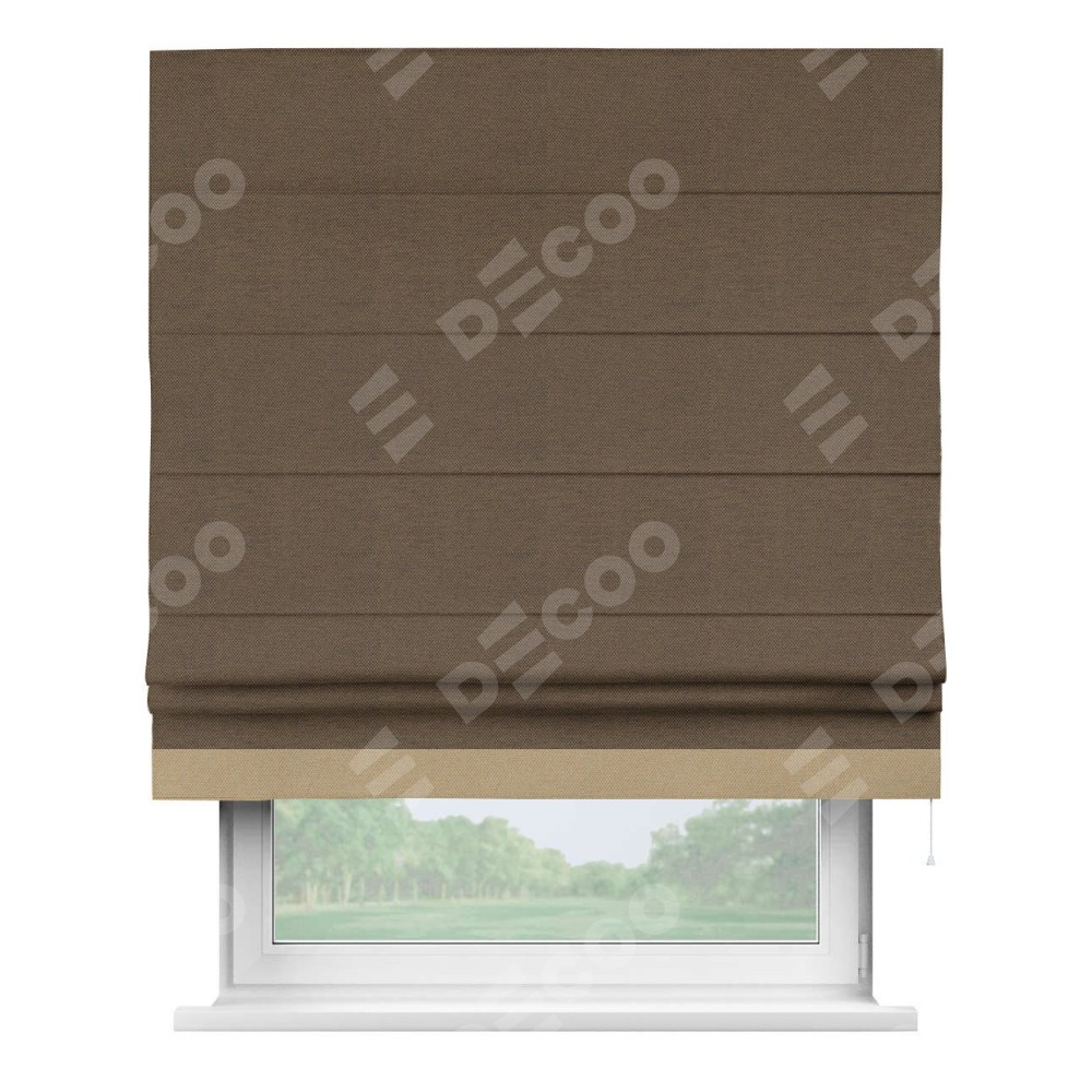 Римская штора «Кортин» с кантом Джестер, для проема, ткань лён димаут, тёмно-коричневый
