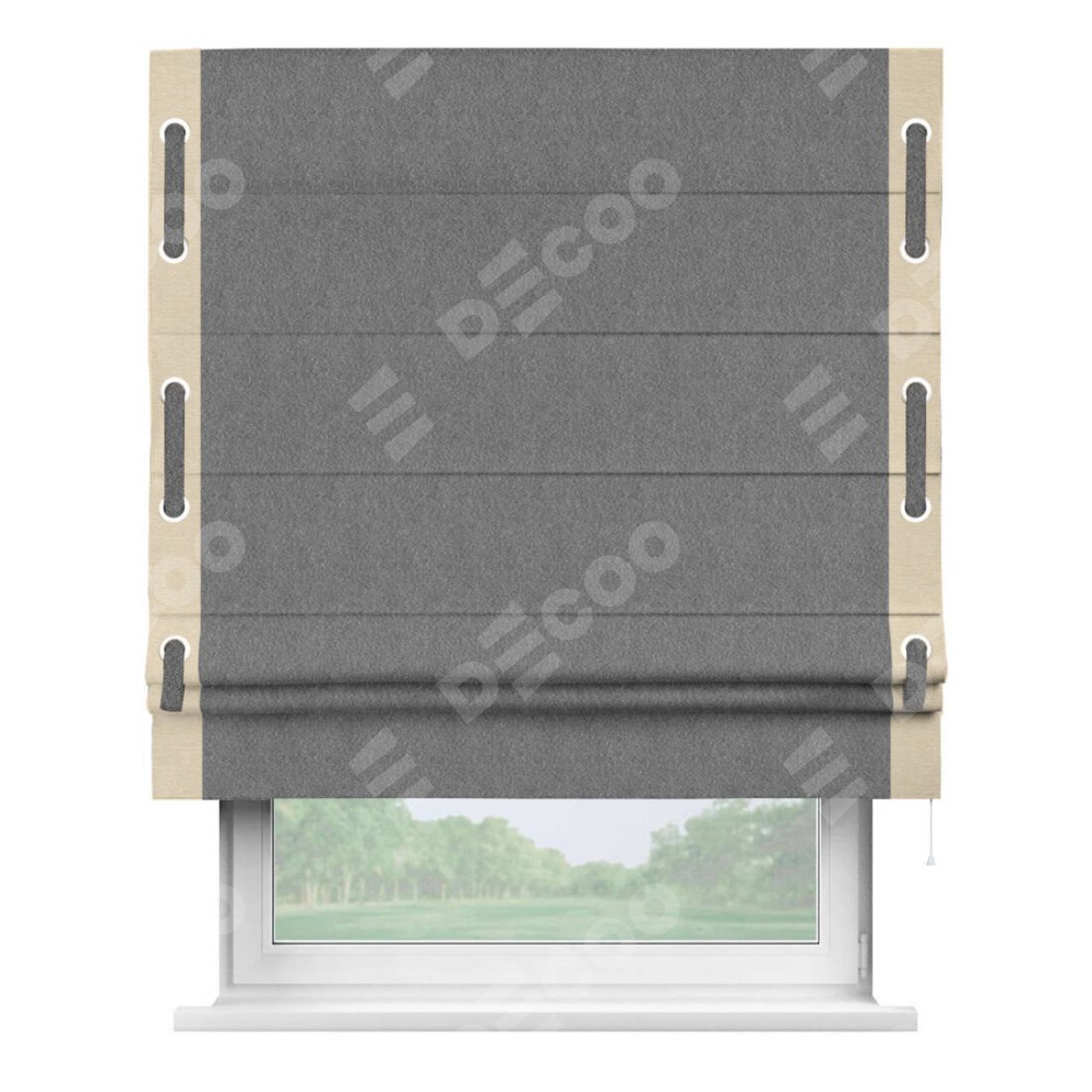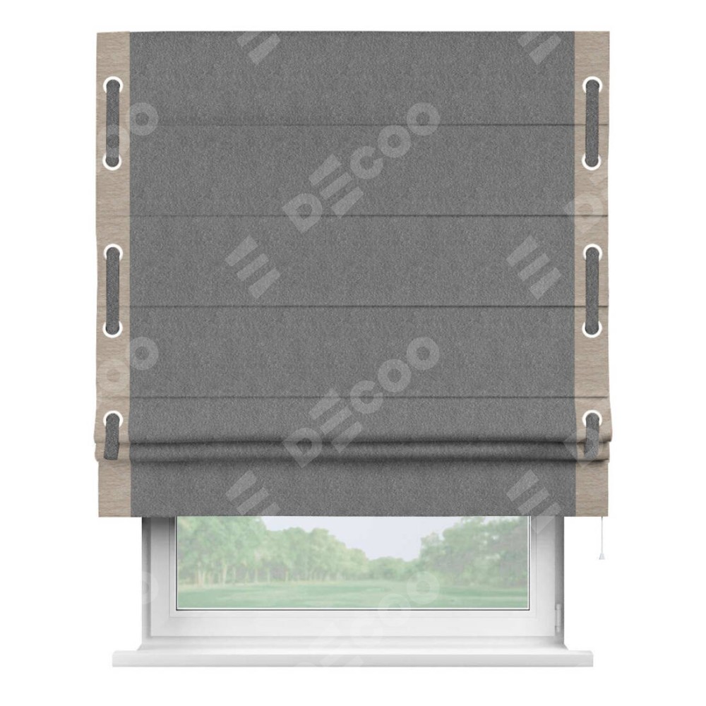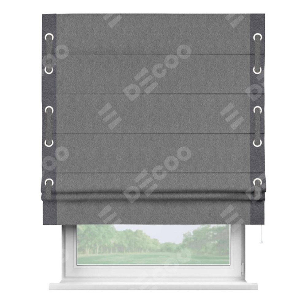 Римская штора «Кортин» с кантом Стрим Дуо (люверсы с пояском), для проема, ткань софт однотонный серый