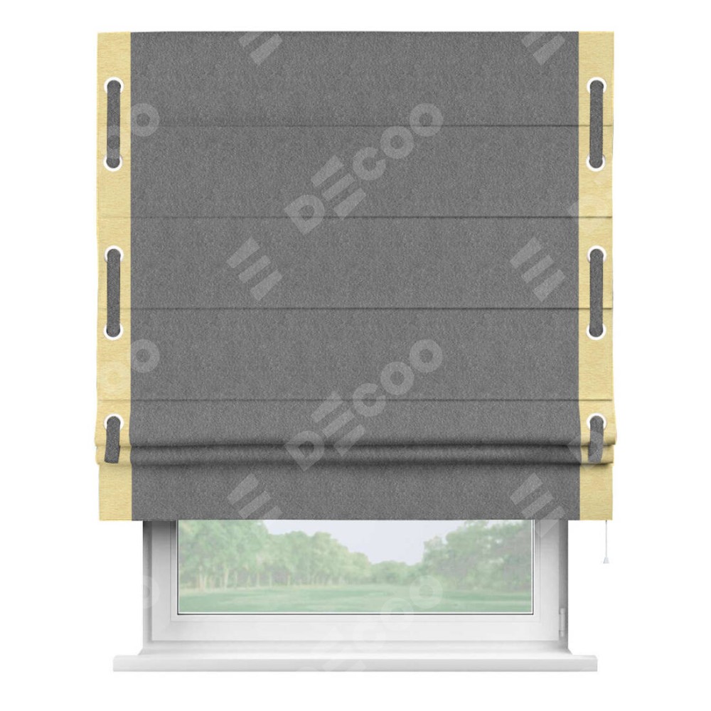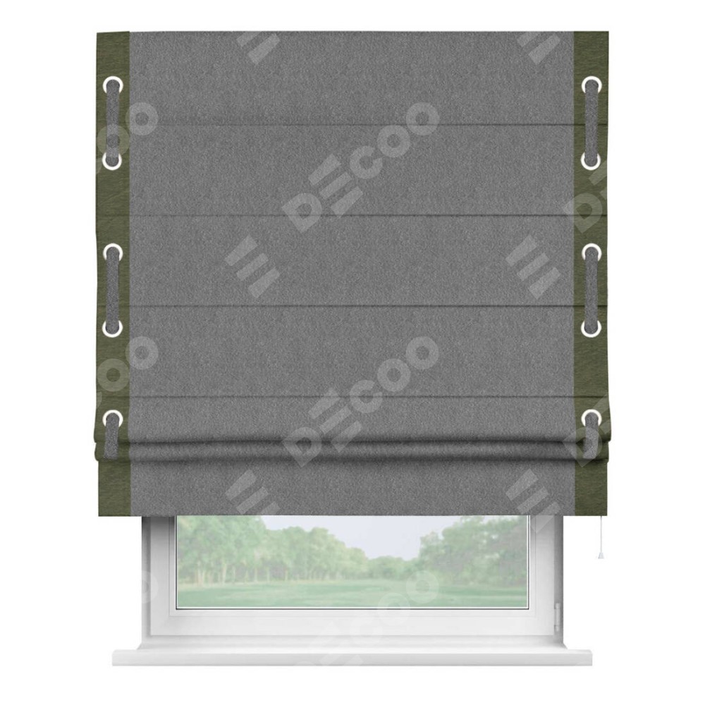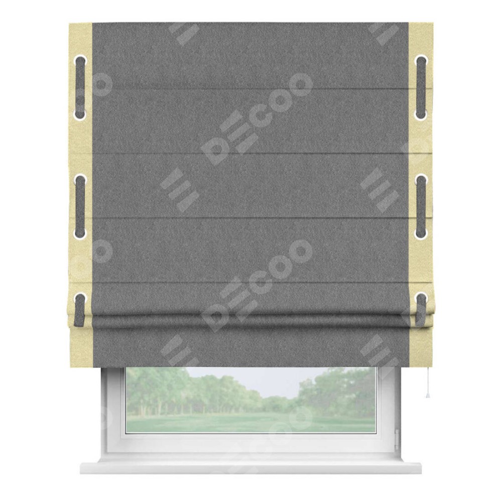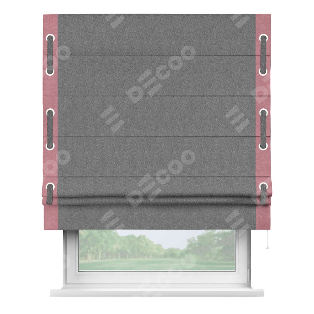 Римская штора «Кортин» с кантом Стрим Дуо (люверсы с пояском), для проема, ткань софт однотонный серый