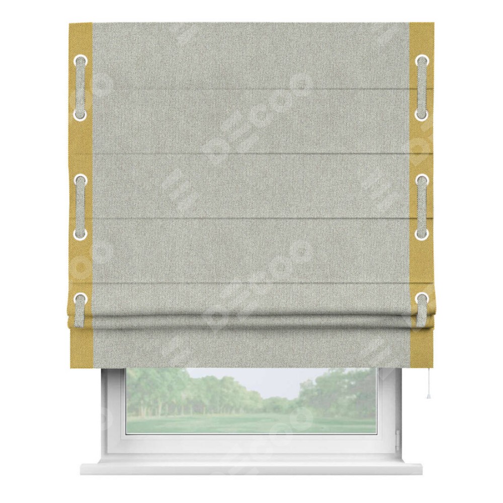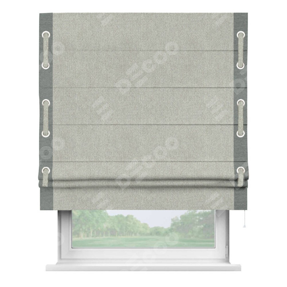 Римская штора «Кортин» с кантом Стрим Дуо (люверсы с пояском) предоставлена в следующих характеристиках: