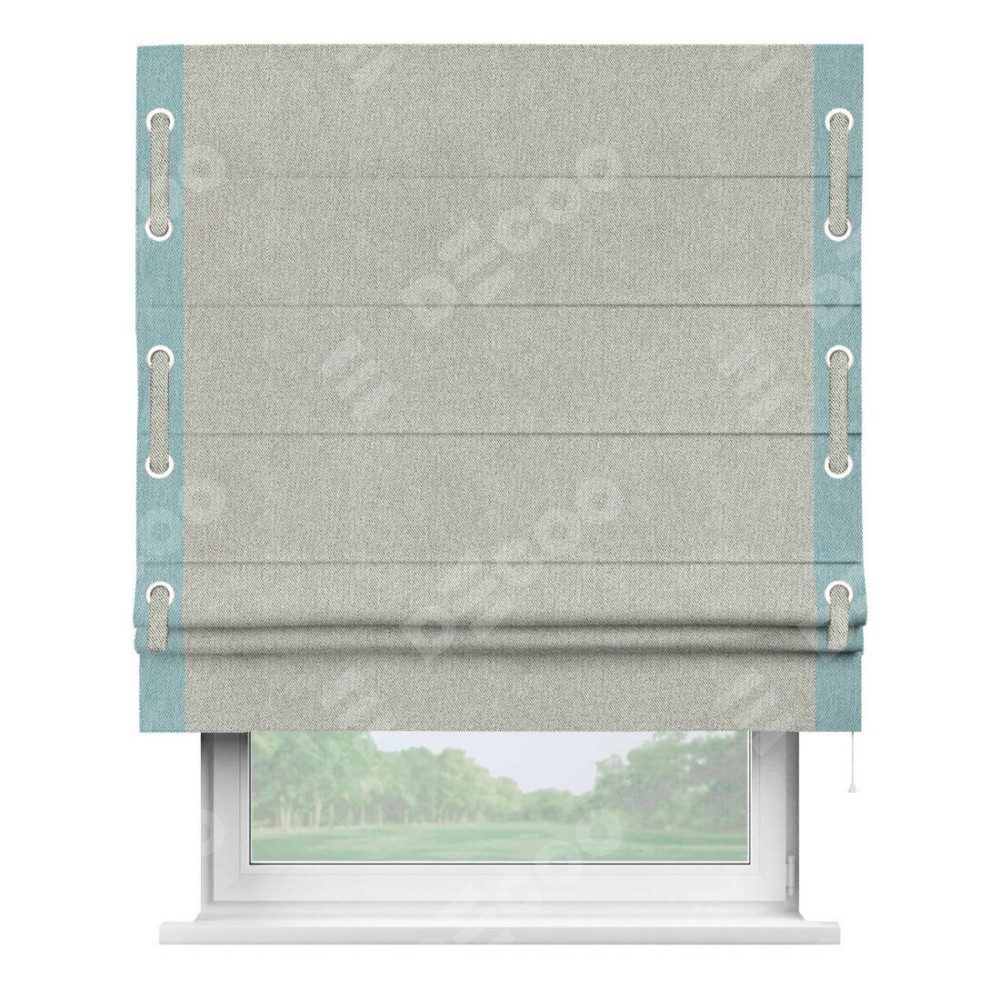 Римская штора «Кортин» с кантом Стрим Дуо (люверсы с пояском) отлично подойдёт для интерьера: на балкон, в детскую и в офис.