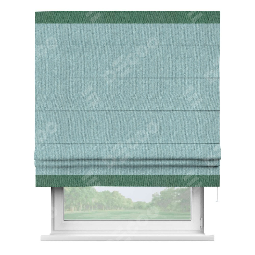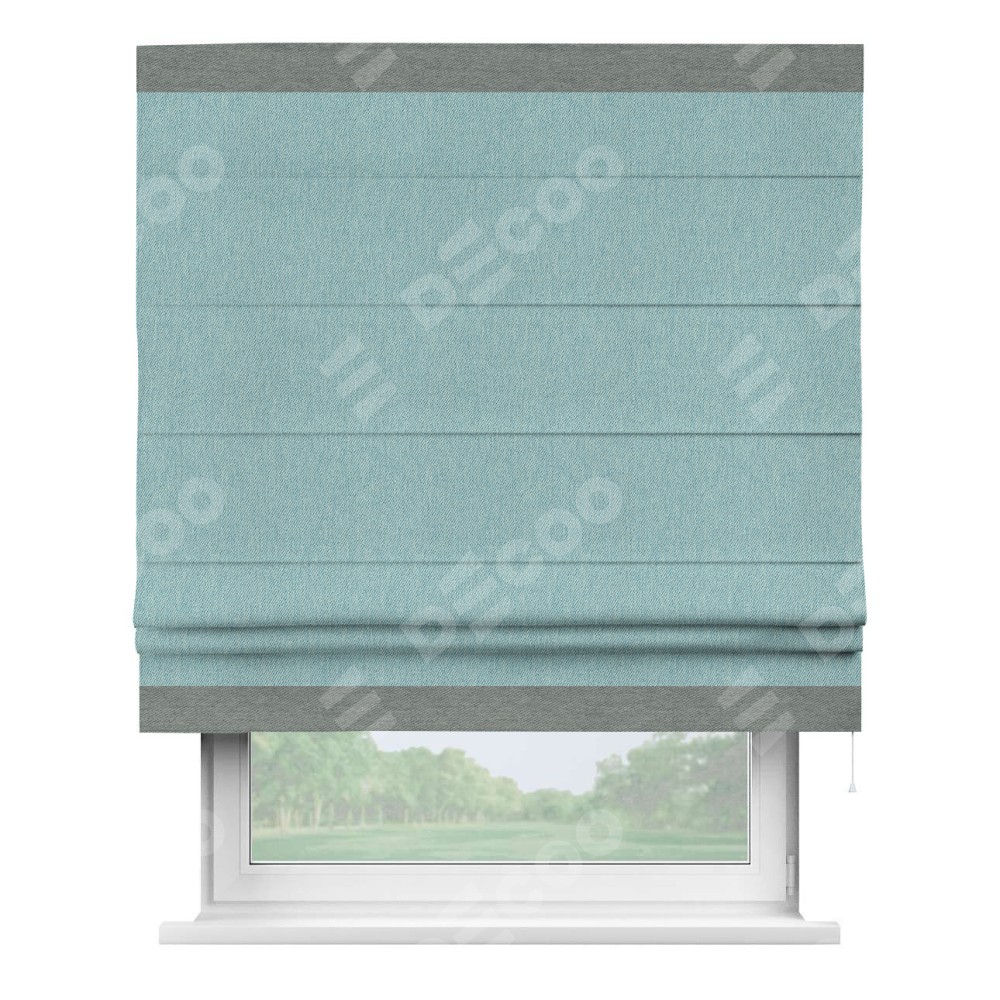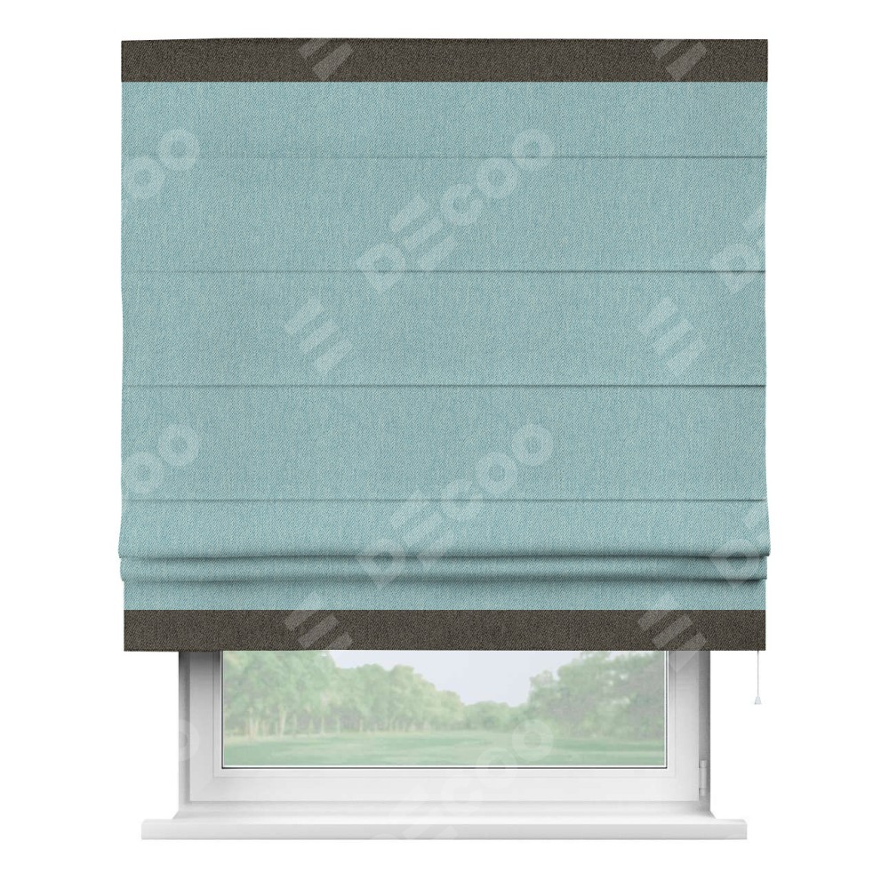 Римская штора «Кортин» с кантом Горизонт, для проема, ткань твид блэкаут, небесно-голубой