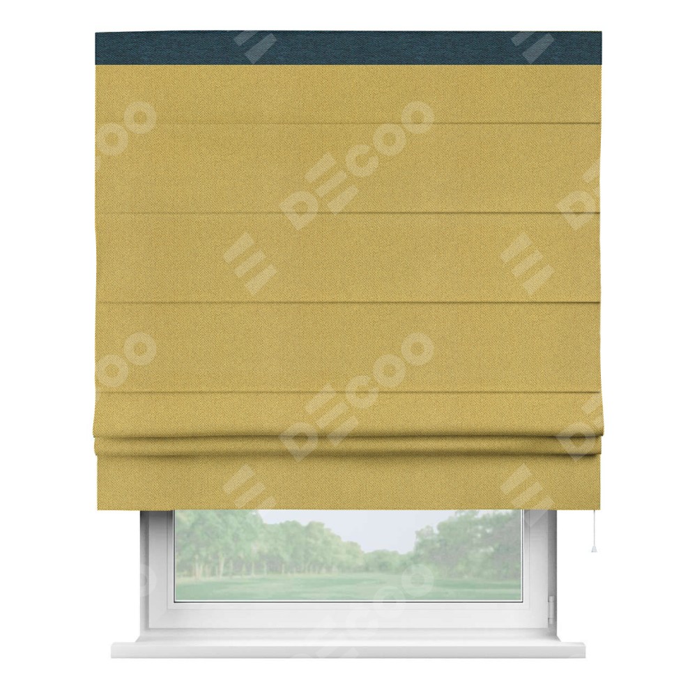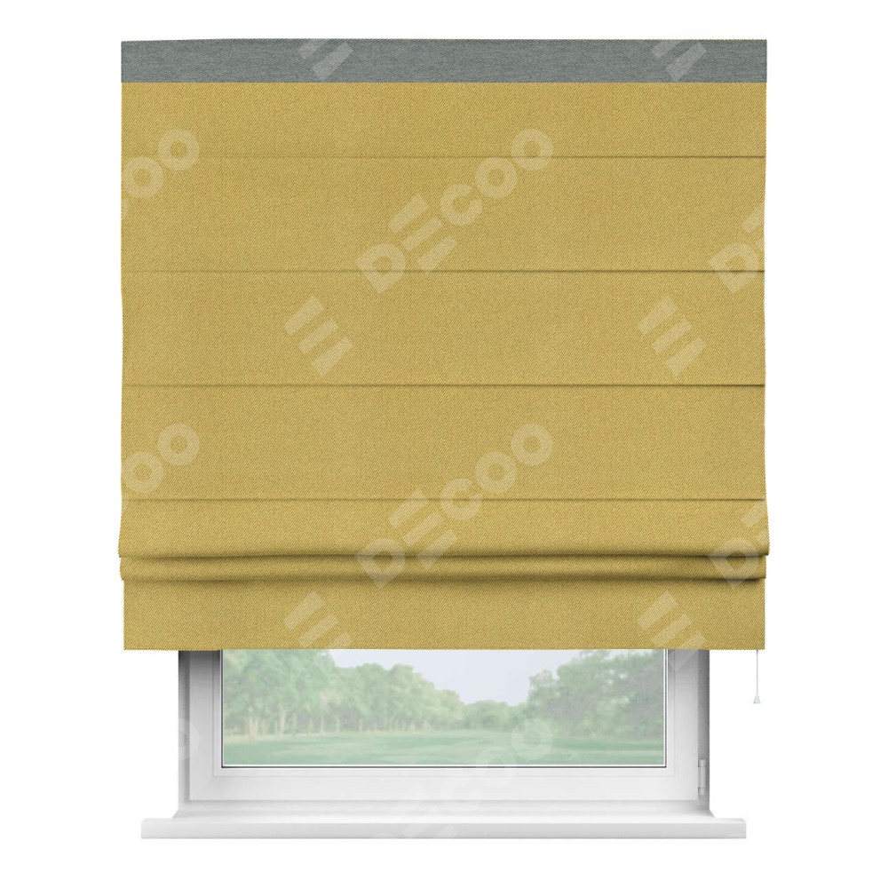 Римская штора производителя «Cortin», используется для проёма, пошита из ткани твид блэкаут пыльная горчица, артикул 21588. Отделка шторы кантом «Кинг», ткань для канта используется из твида разной расцветки на выбор. Имеет универсальный механизм и подходит для монтажа: на потолок, на стену и в нишу.
