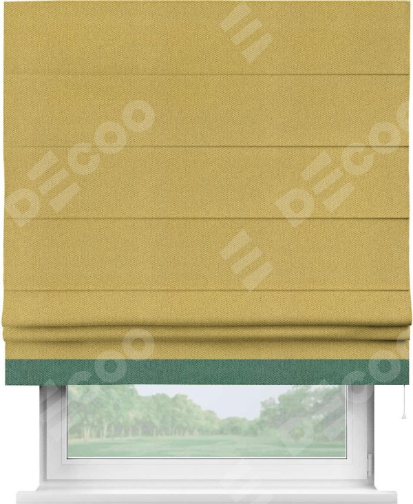 Римская штора «Кортин» с кантом Джестер, для проема, ткань твид блэкаут, пыльная горчица