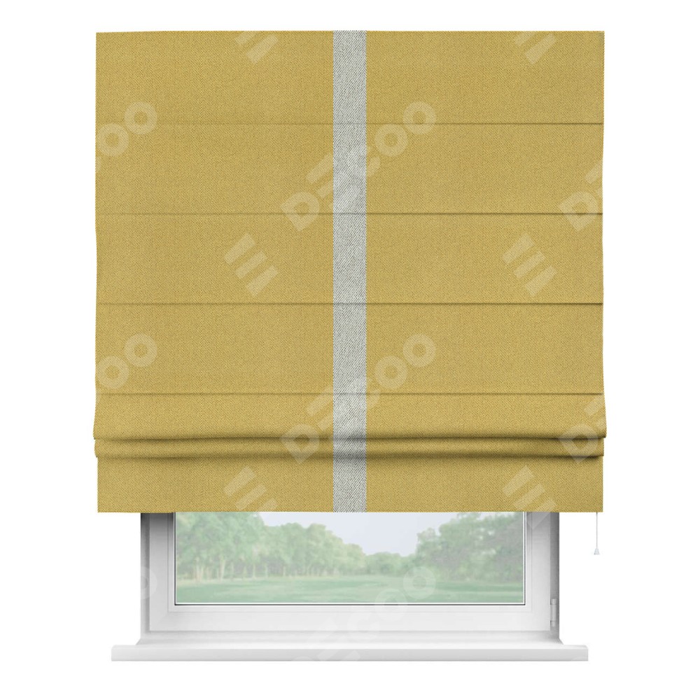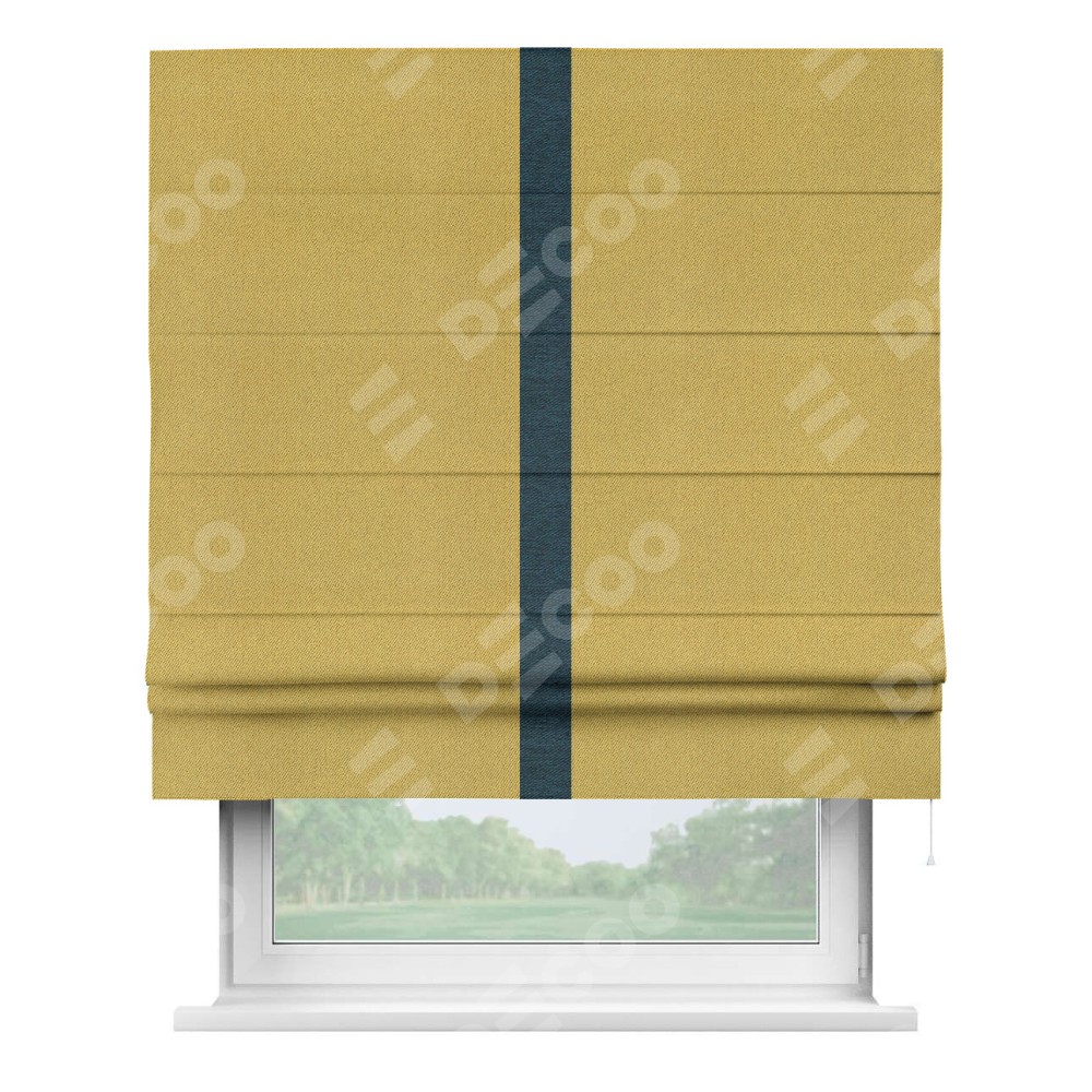 Римская штора производителя «Cortin», используется для проёма, пошита из ткани твид блэкаут пыльная горчица, артикул 21588. Отделка шторы кантом «Хайвэй», ткань для канта используется из твида разной расцветки на выбор. Имеет универсальный механизм и подходит для монтажа: на потолок, на стену и в нишу.