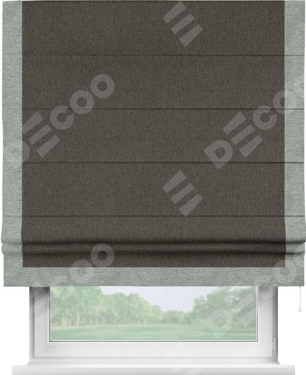 Римская штора «Кортин» с кантом Виктория, для проема, ткань твид блэкаут, тёмно-коричневый