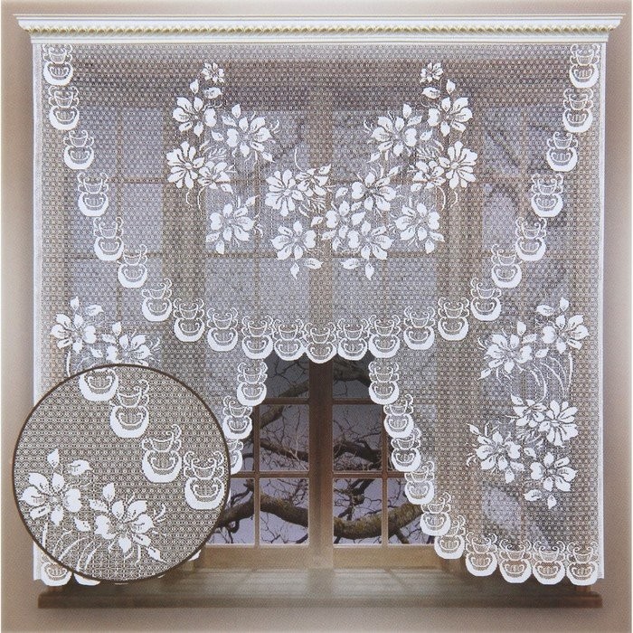 | Тип тюли: | Готовый, Короткий, С рисунком, С цветами, Тюль-арка |