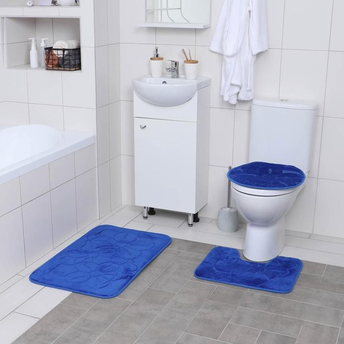 Набор ковриков для ванны и туалета Доляна, 3 шт: 36×43, 40×50, 50×80 см, цвет синий