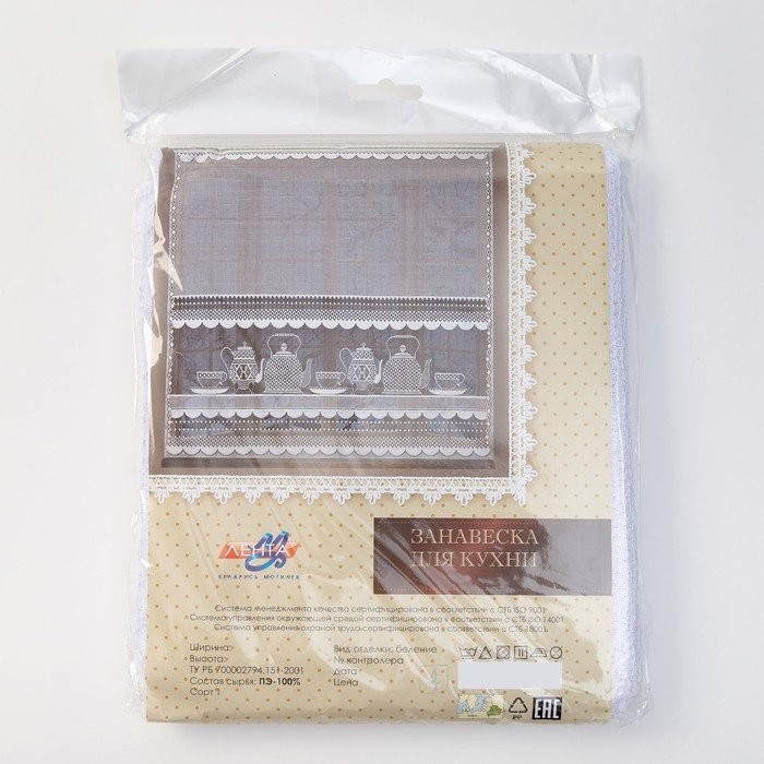 Штора кухонная 163×170 см, белый, 100% п/э, без шторной ленты