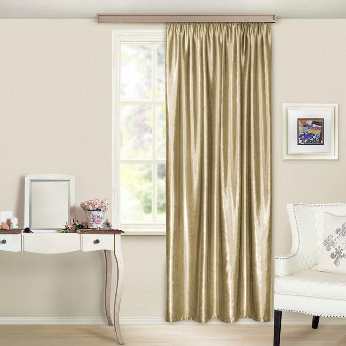 Штора портьерная, «Водевиль», 135×260 см, цвет светло-золотой, тиснение — модель с изысканным объёмным узором, которая не только освежит интерьер, но и надёжно защитит комнату от ярких солнечных лучей.