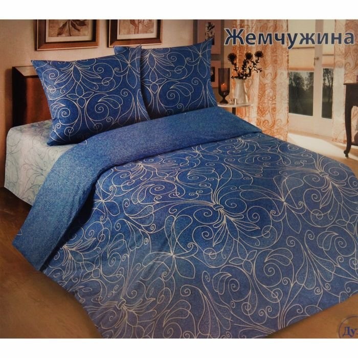 Постельное бельё евро"Традиция: Жемчужина», цвет голубой, 200×217 см,220×240, 70х70см — 2 шт